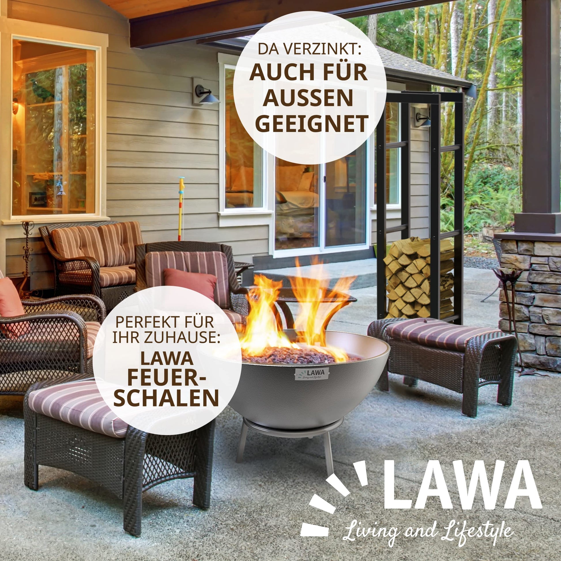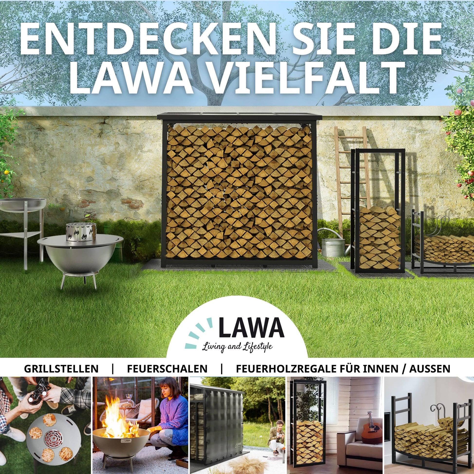 POSSIBILITIES! You can also use our fireplace wood racks outside or on the terrace / porch without any worries. The galvanization of the firewood racks makes this possible without restrictions. We offer this and other galvanized firewood racks in various variants / colors at LAWA Living and Lifestyle."