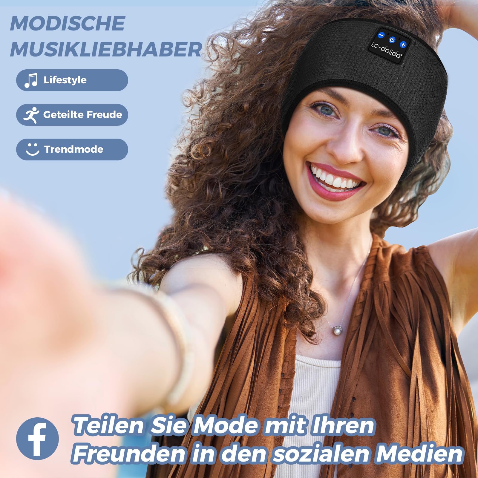 ["Improved Sleep Headphones Bluetooth】Equipped with the latest Bluetooth 5.4 technology, our Bluetooth Headphone pairs quickly with a Bluetooth smartphone in seconds. The connection is faster and more stable. The high-quality chipset of the sleep headband headphones provides higher and stronger sound quality, perfect for fitness training, running, yoga, and other outdoor activities.","【High-performance Battery for up to 14 Hours】Bluetooth Wireless Music Headband with the integrated lithium battery only needs 2 hours for charging and plays continuously for up to 14 hours, allowing you to listen to music and fall asleep quickly without needing additional headphones. With professional and beautiful packaging, Bluetooth Sleep Headband Headphones are a great gift for your friends or family! Bluetooth headband Christmas gifts for women/men","【Super Soft Comfortable Washable Sleep Headphones Bluetooth】Our sleep headphones are made of high-quality quick-drying outer material with breathable mesh lining, thin and compact, LC-dolida Bluetooth Sleep Headphones are washable, simply remove the module and clean the Bluetooth sleep headband","【Best Sleep Headphones for Side Sleepers】Ultra-soft sleep headphones with 2 ultra-thin flat speakers are comfortable to wear even when sleeping on your side, exerting no pressure on your ears. Sometimes you may even forget you're wearing them. Truly wireless, no more tangled cords! They are comfortable enough. Made of durable braided cord, the sleep headphones easily stretch and fit all head sizes","【Professional 24-Hour Customer Service】Our 3-in-1 Bluetooth Headband can be used as Bluetooth Sleep Headphones & Sleep Mask & Sports Headband, making it a great companion for you! Perfect fit for sports or sleep. If unsatisfied, we will immediately refund the full amount! If you have any questions, please feel free to contact us"]