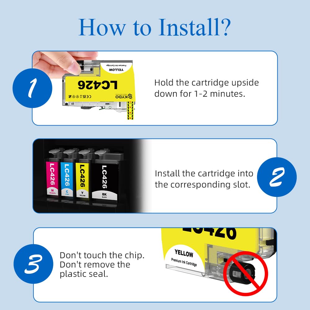 ["Excellent quality: Skydo LC426 cartridges are fully compatible with your printer and deliver sharp, vibrant colors and images with clear, high-quality text.","Package contents: 4-pack for Brother LC426. 3000 pages for LC421 Black and 1500 pages for each LC426 color cartridge (Letter / A4, at 5% coverage)","Perfectly Compatible: for Brother MFC-J4335DW MFC-J4340DW MFC-J4535DW MFC-J4540DW Series Printers","Consistent quality: The vibrant printing results are the result of the time and money we invest in production, research, and development.","Convenient: All cartridges come with individual protective bags and instructions."]