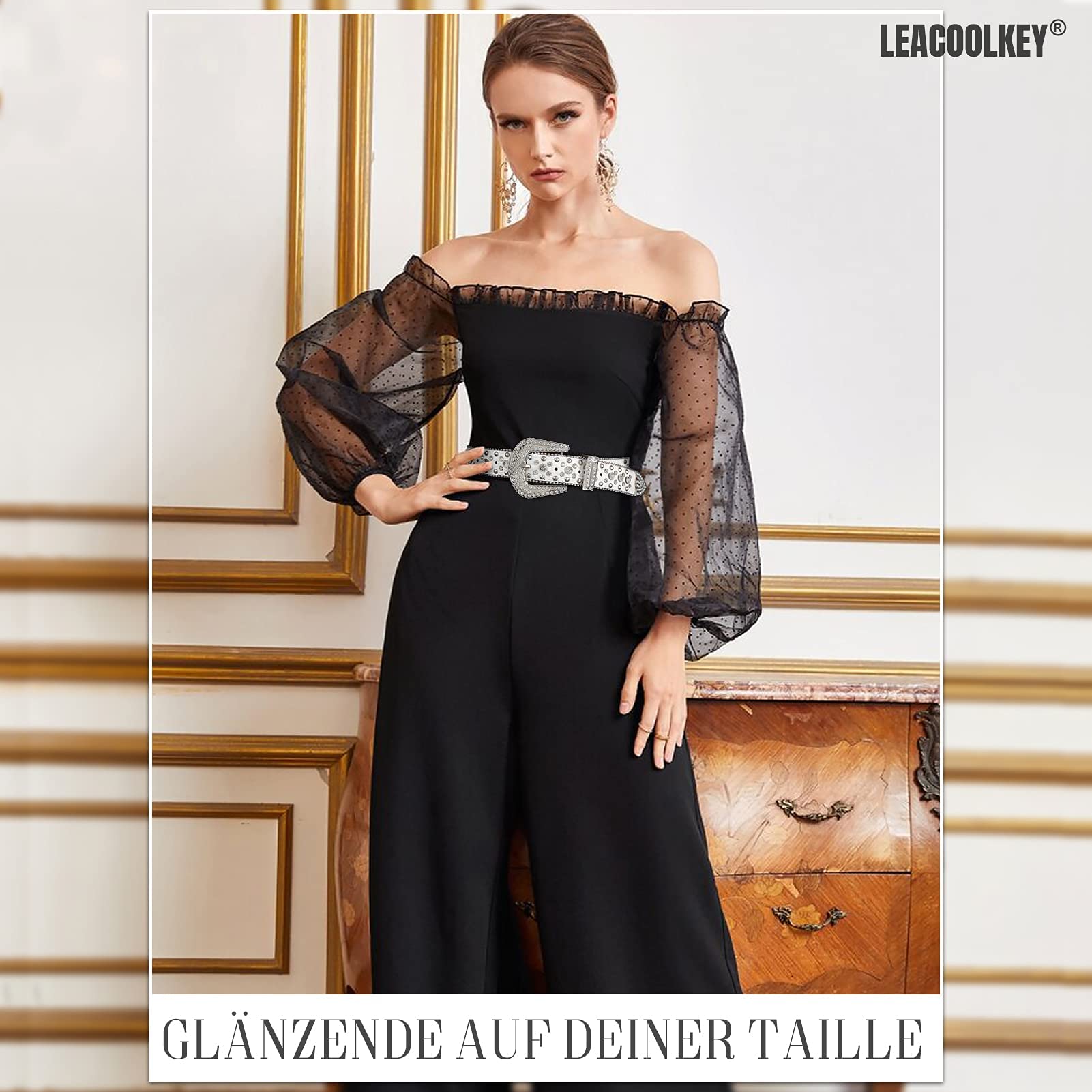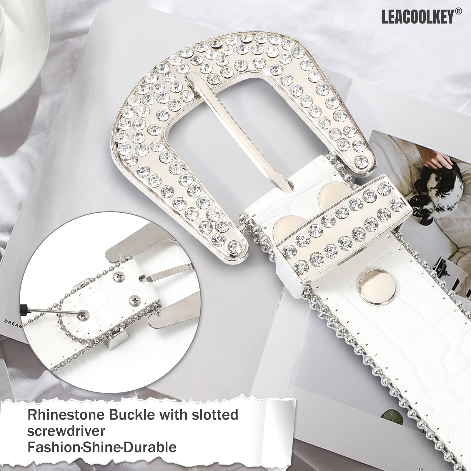["Fine Workmanship: This rhinestone belt is made of high-quality faux leather, bling rhinestones, and sturdy studs, with pearl edging, exquisite and beautiful. Durable and wear-resistant, not easy to damage, and the large rhinestones are always sticky and not easy to fall off. The fashionable Western cowgirl belt can hold your pants very well and is suitable for most of your outfits. Absolute value for money.", "Eye-catching Bling: This Western cowgirl leather belt is full of shiny rhinestones, which are very dazzling and eye-catching. We have also specially extended the rhinestone embedding area to ensure that no rhinestones are visible in the position when tying the belt, enhancing the delicacy of the entire belt. Wearing it can give you more fashion and charm.", "Detachable Buckle: This rhinestone belt buckle features two rows of hidden buckles. You can easily open it, then remove the buckle and personalize it to your liking. This unique design enhances the flexibility and variety of this rhinestone belt. It will make you stand out in the crowd and make you more confident, beautiful, and sexy.", "Can Be Used in Many Occasions - This beautiful diamond belt can be used on jeans and skirts. It is suitable for parties, picnics, and villages. It can be paired with different types of clothing, allowing you to spend a portion of money and have many uses. It is the ideal companion to reflect the curvature of your waist.", "Exquisite Packaging: The fashionable rhinestone belt is packaged in a neutral box, discreet and luxurious. There is no logo on the box, you can also use it to pack other gifts for others. Let this fashionable rhinestone belt add sparkling decorations to BBQs, parties, clubs, country concerts, or other Western-themed occasions. Receive many compliments from your friends."]