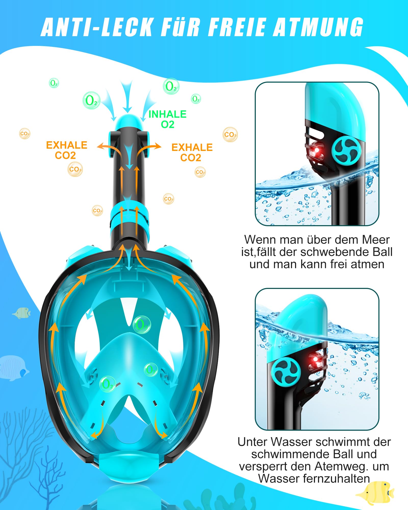 180° HD PANORAMIC VIEW: Our snorkel masks are equipped with clear, flat HD lenses that provide you with an ultra-wide, ultra-sharp underwater field of view that does not distort your vision underwater and prevents dizziness and discomfort. Additionally, you can attach your camera (not included) to the camera mount of the snorkel mask to easily capture your snorkeling moments and share your diving experience with friends and family!