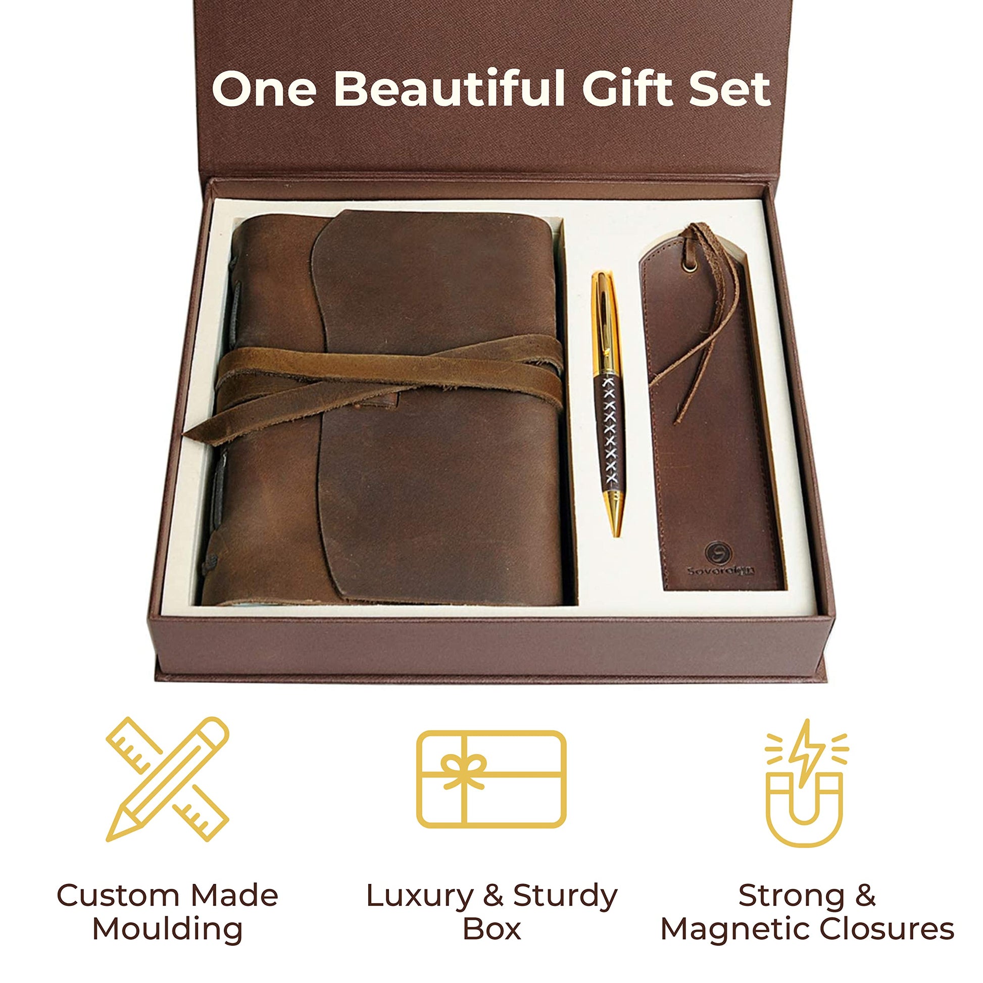 "✑ Leather bookmark, unique gift set with diary, leather, handcrafted, hidden space for pen and stylish - all in this finely crafted gift box, making it the perfect gift",