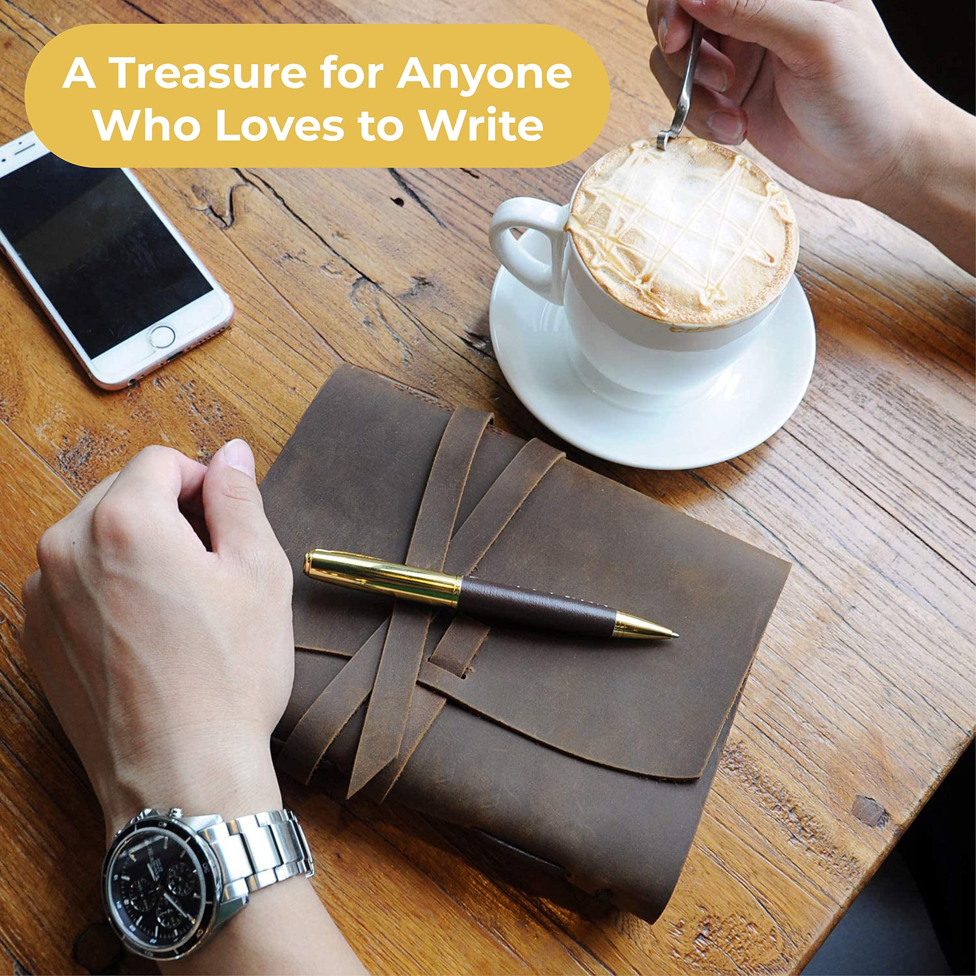 ["✑ Leather journal - Durable soft Crazy Horse Leather Journal and bookmark made of high-quality Buffalo Leather with a wonderful leather scent - soft touch and delicate yet super sturdy. Coated with special oils, this leather becomes unique antique and distressed when scratched or marked - rubbing it will make the patterns fade",