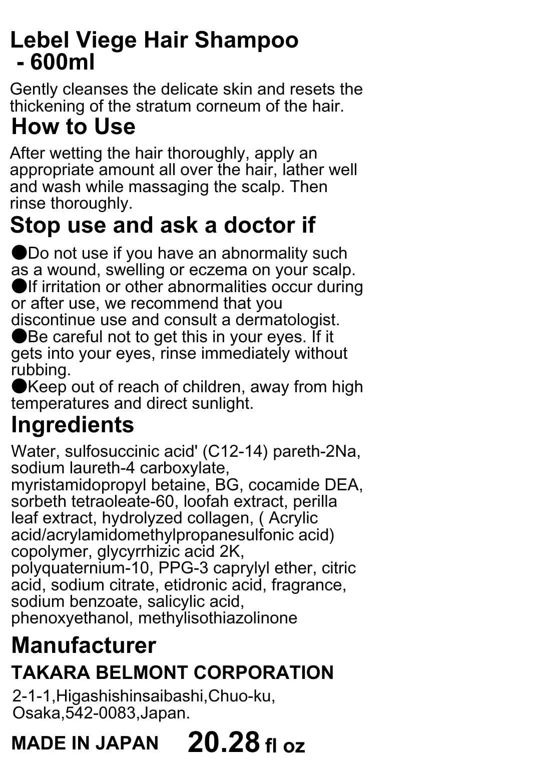 "Lebel Viege Hair Shampoo - 20.28 fl oz (Green Tea Set)"