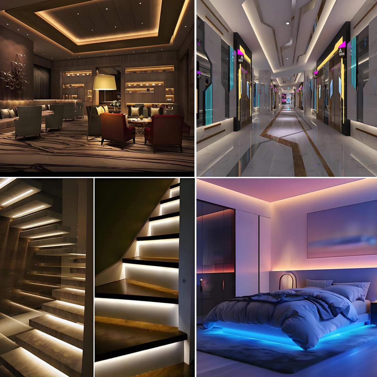 LED Aluminum Profile Applications: Suitable for a variety of 12mm LED strips (e.g. 3528, 2835, 5050, and 5630 etc.). Note: Corner profile not included LED light strips. Ideal for balconies, living rooms, bedrooms, terraces, cabinets, nightstands, dressers, bookshelves, kitchens, cabinets, jewelry cabinets and other scenes door frames, bars, stairs, etc. LED strip rail will last for years!