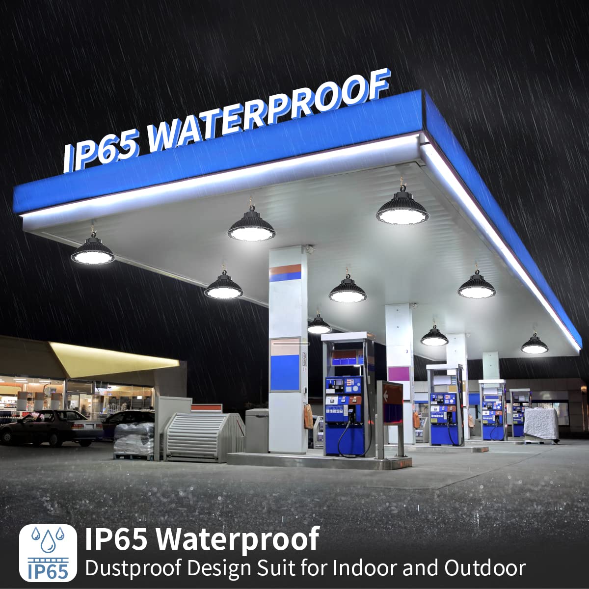 ["LED high bay light is Super Bright: 28000LM high quality 200W LED high bay light provides clear light, with a cool white temperature of 5000-5500K, making the indoor and outdoor LED high bay lighting shine brightly. The beam angle is 120°, the color rendering is up to 80, LED UFO industrial lamp with a stunning light output of up to 140 LM/W, excellent replacement for traditional fluorescent tubes and saves up to 93% of electricity charges", "Anti-reflective LED high bay light: The workshop lamp features a unique and professionally designed lighting method. The light is not vertically scattered, but uses the principle of PET reflection. The light first shines on the PET reflection film and is then reflected by the PET reflection film. This can protect the eyes and is therefore suitable for gyms, swimming pools, sports fields, and other fitness areas", "The LED high bay light has good heat dissipation: The industrial lamp is made of high-quality, heat-dissipating aluminum, with excellent workmanship, complete accessories, high-tech heat flow channel design, more efficient and faster heat dissipation, protection of the LED chips and driver performance. Good heat dissipation also plays a role in protection against oxidation, rust, and corrosion, increasing the service life of the industrial light to about 50,000 hours", "Waterproof LED high bay light IP65: The LED high bay light is waterproof IP65, the lamp body is made of solid aluminum and the surface is painted to avoid rust and corrosion. The LED high bay light rarely needs to be replaced, ensuring a long lighting duration. The hook and metal chain can be adjusted to any height, very suitable for indoor and outdoor use, suitable for workshops, garages, barns, construction sites, warehouses, basements", "Longer lifespan LED high bay lighting: we strictly control the quality of our products and provide excellent customer service. LED workshop lamps are manually tested. LED workshop lamps have a lifespan of up to 50,000 hours. If the product is damaged during its lifespan, please send us an email and we will provide a satisfactory solution for you"]