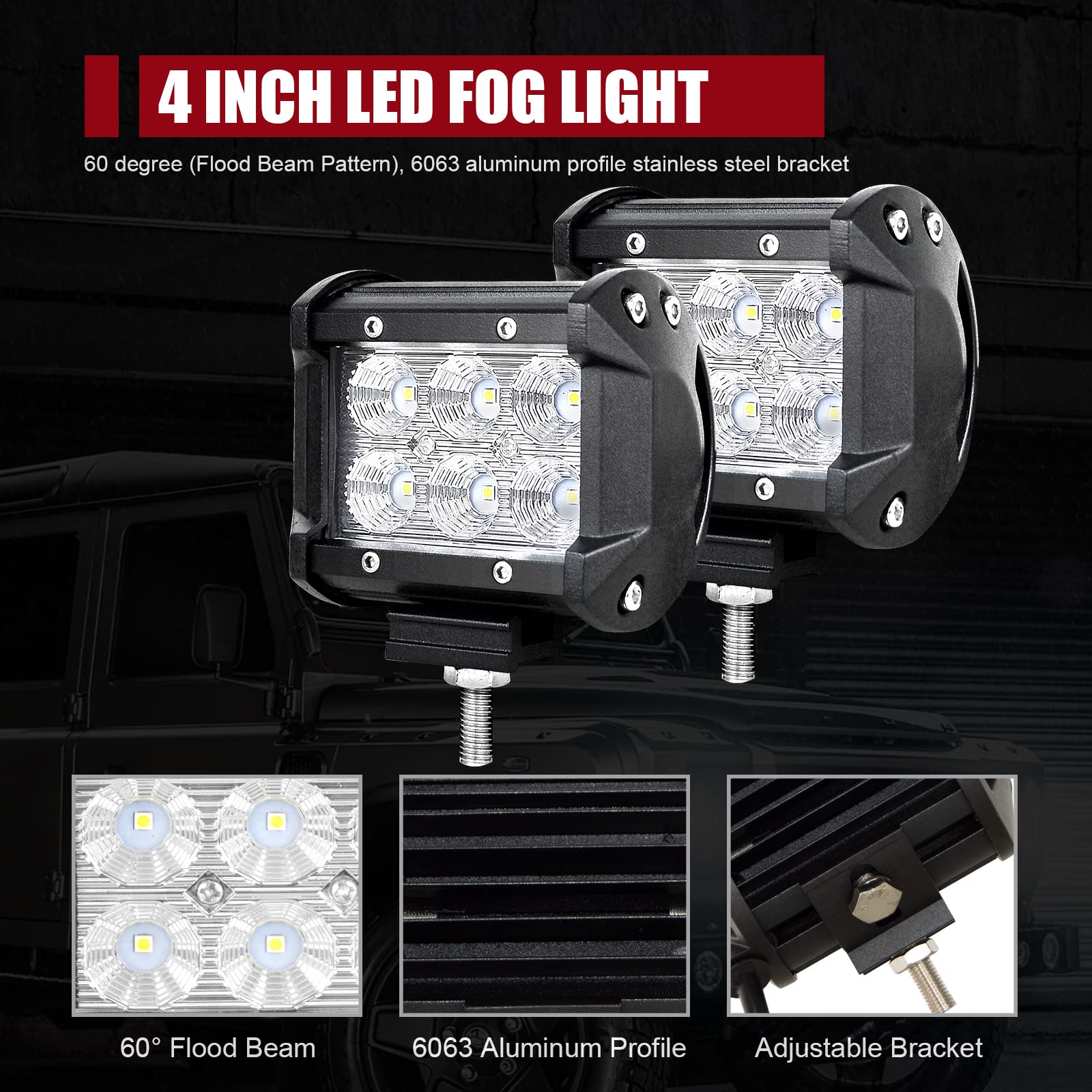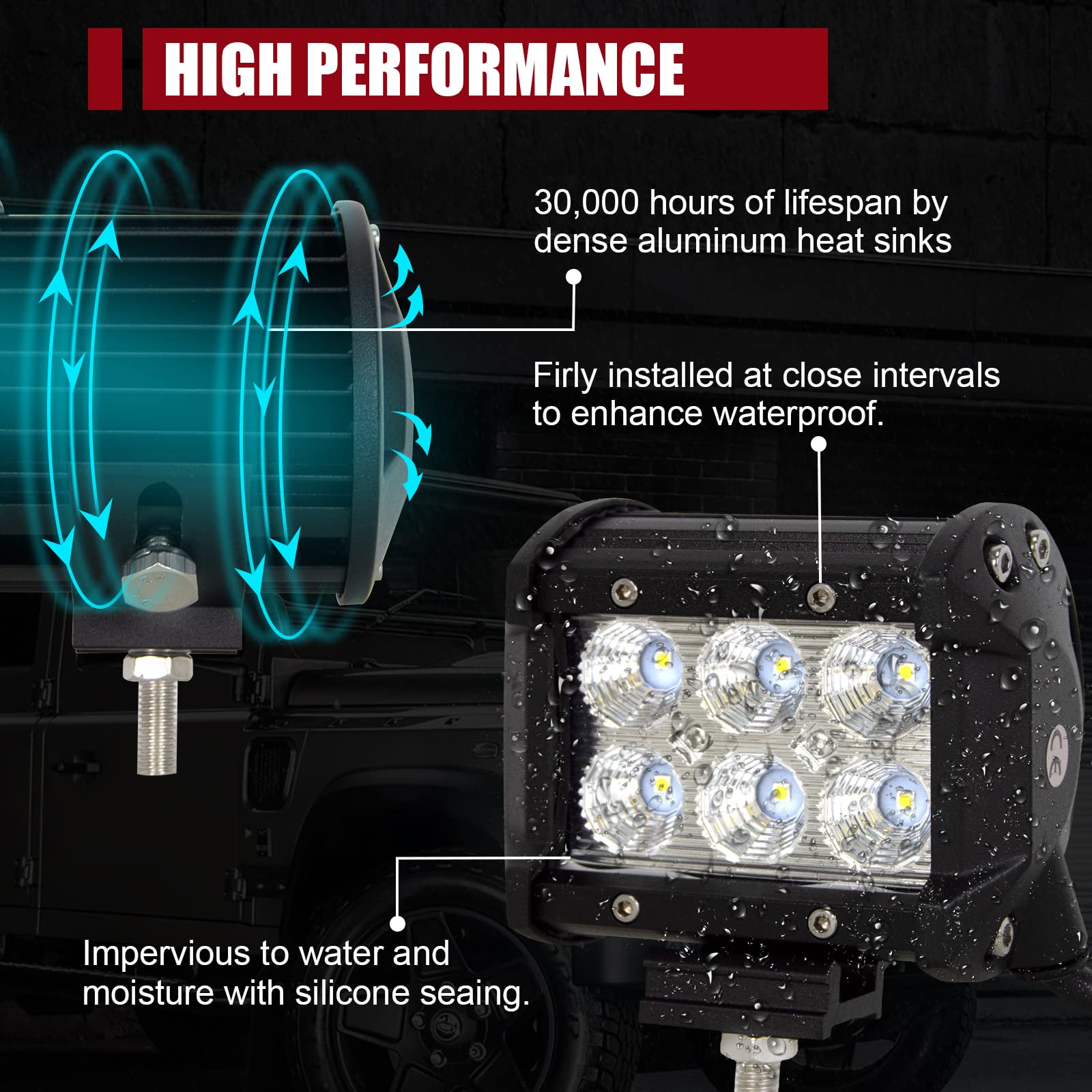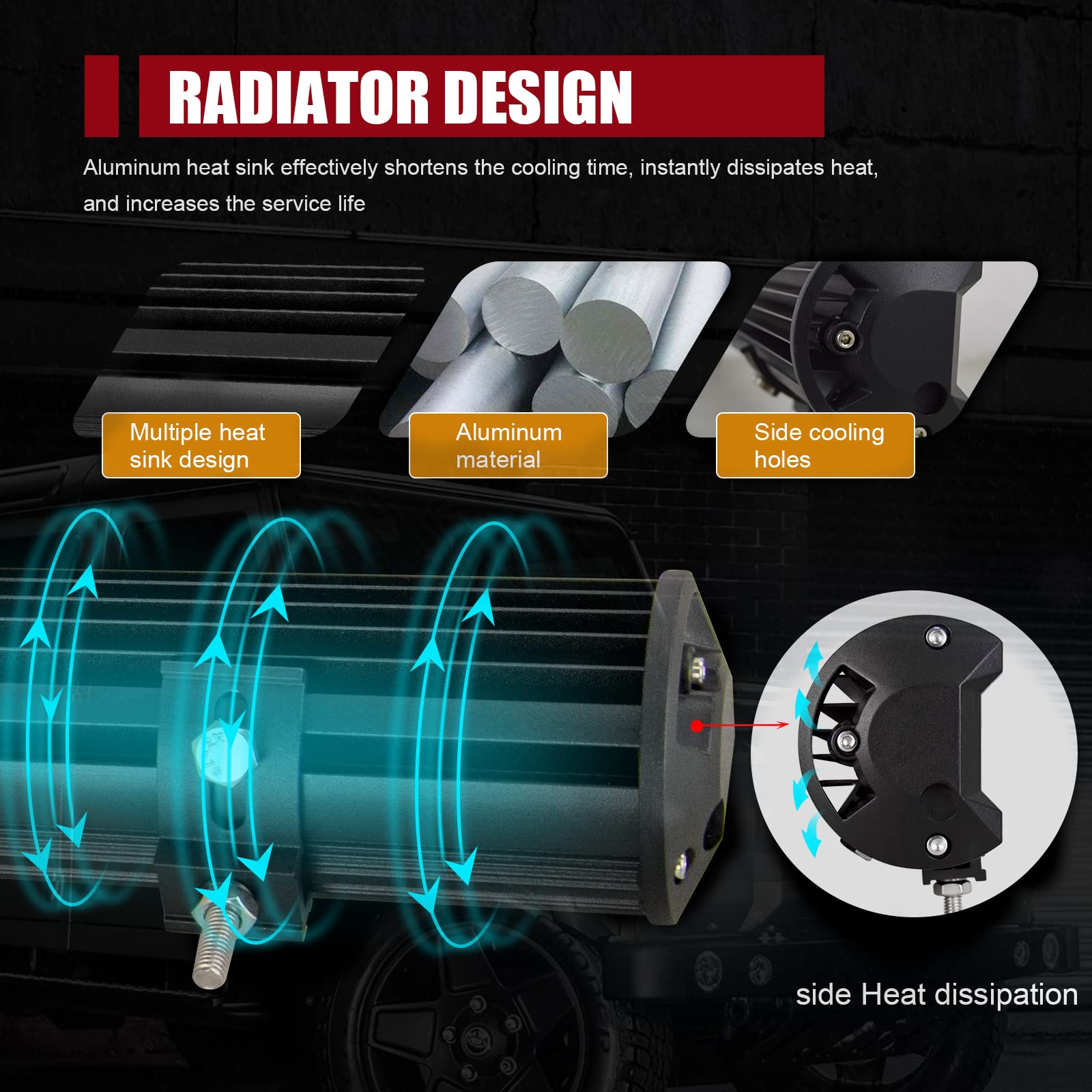 ["Operating voltage: DC 10-30V (12V / 24V vehicle mount)","Waterproof: IP 67","Operating temperature: -40-85 degrees Celsius, Lifespan: 30,000 hours above","Wide application: Compatible with all automobiles and devices equipped with a 10 to 30 volt DC power source.","What you get: SKYWORLD 20 inch 288W LED light bar, 2 pieces 4 inch 18W LED work light, a 10 ft 40A 12V wiring harness, 2 years worry-free warranty and friendly customer service."]