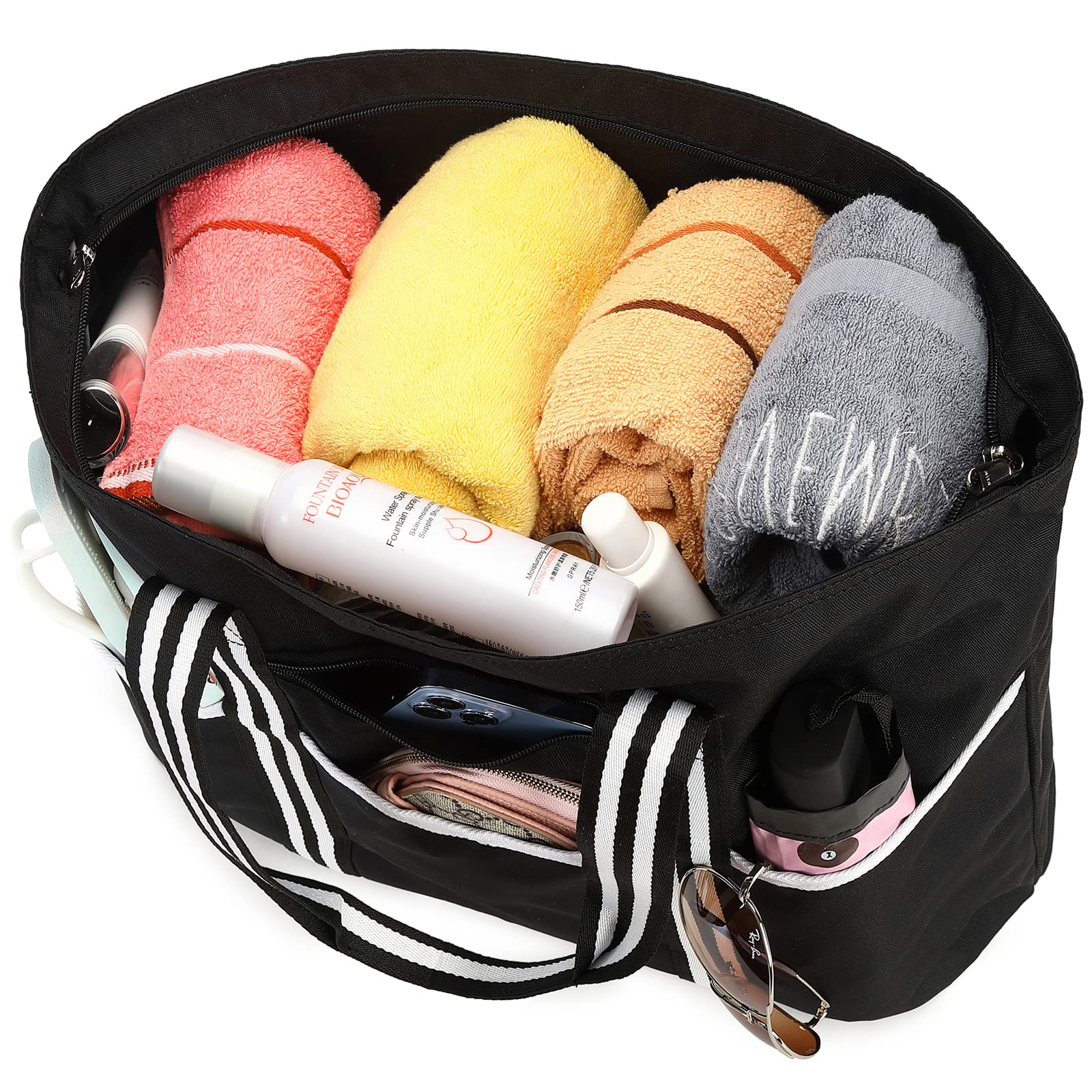 LEDAOU Large Beach Bag Women Shoulder Bag Handbag Waterproof Sandproof Zipper Pool Picnic Gym Travel Bag (B-Black)