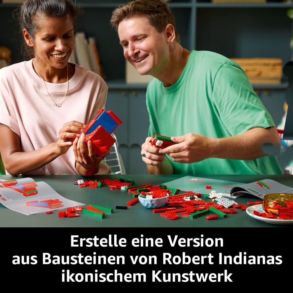 "Gift for adults and couples made of LEGO bricks: Create your own mini version of Robert Indiana's famous LOVE sculpture with this creative LEGO Art set for adults"