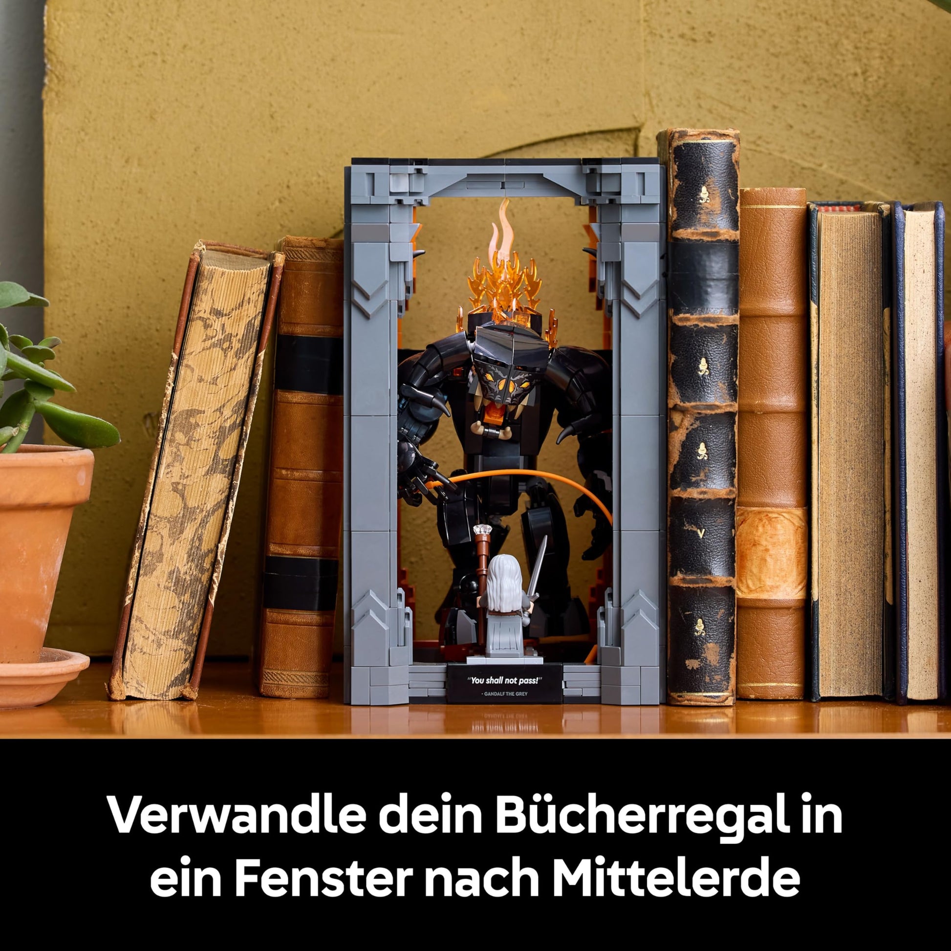 Content of the box: Everything you need to build the LEGO The Lord of the Rings bookend, the Balrog with fire whip, and Gandalf the Grey with staff and sword as a model kit for adults.