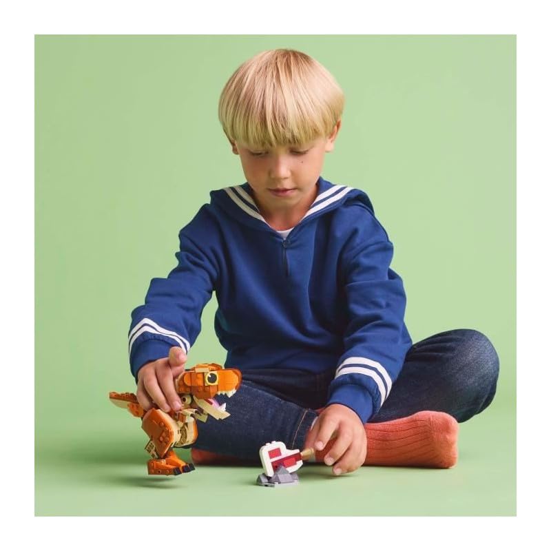 ["Toy T.Rex: Little Eatie: T.Rex is a building set that lets kids aged 7 and up discover and play out their enthusiasm for dino adventures; The buildable dino offers countless cool building and display possibilities","Little Eatie Dino Model: The set includes a small buildable T.Rex figure from the animated series Jurassic World: Camp Cretaceous as well as a steak that inspires fun role-play and stories","Posable LEGO Dinosaur: The dino from this building set for the animated series Jurassic World: Camp Cretaceous can open its mouth and move its head, tail, arms, and legs to pose it in different positions","Gift for Kids: This Jurassic World T.Rex model is aimed at fans who love dinosaurs and adventures; The building toy is a cool surprise for boys and girls aged 7 and up who deserve a reward","Even More Fun: This detailed playset allows dino fans to play specially creative when they combine the figure with other separately available LEGO sets and especially with other Jurassic Word models","LEGO model for the TV series Jurassic World: Camp Cretaceous: LEGO building sets are designed to inspire children with toy dinosaurs, encourage their creativity, and help develop a talent for storytelling"]