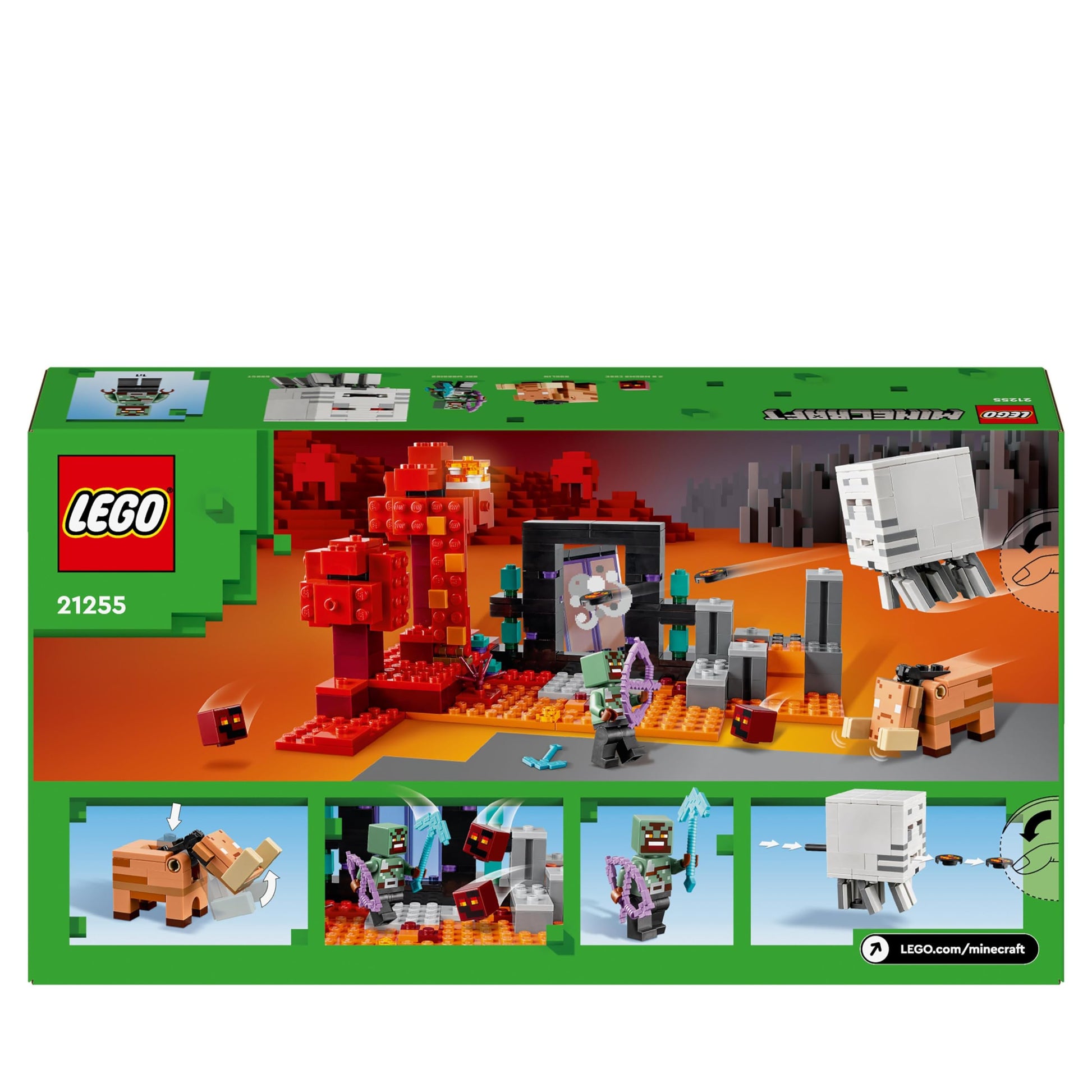 ["LEGO Minecraft Nether Portal: This Minecraft adventure set is a toy for gamers and kids aged 8 and up. Boys and girls will enjoy building action scenes and reenacting with the legendary Minecraft figures.","Minecraft battle scene with action figures: Includes an Orc Warrior, a Minecraft Ghast launching discs from its mouth, a Hoglin giving headbutts, and 2 Magma Cubes.","Model for role-playing in Minecraft Nether: This action toy represents a part of the Nether and legendary creatures that the Orc Warrior must face a toy for boys aged 8 with lots of action potential.","LEGO set for gifting: Gamers and kids can build the Minecraft Crimson Forest of mushrooms and the landscape of Basalt Deltas a gift for gamers who will love the LEGO Minecraft 21255 set.","Gift for kids aged 8 and up: This playset with the Minecraft Nether Portal is a great gift idea for those who love Minecraft toys and LEGO building toys.","3D building instructions: For an engaging building experience, children can download the LEGO Builder App. With digital features, you can rotate and zoom in on 3D model views, save sets, and track building progress.","Minecraft fun in the real world: LEGO Minecraft sets allow kids to experience the popular video game in a whole new way. Creatures, scenes, and functions come to life with LEGO bricks and their own creativity"]