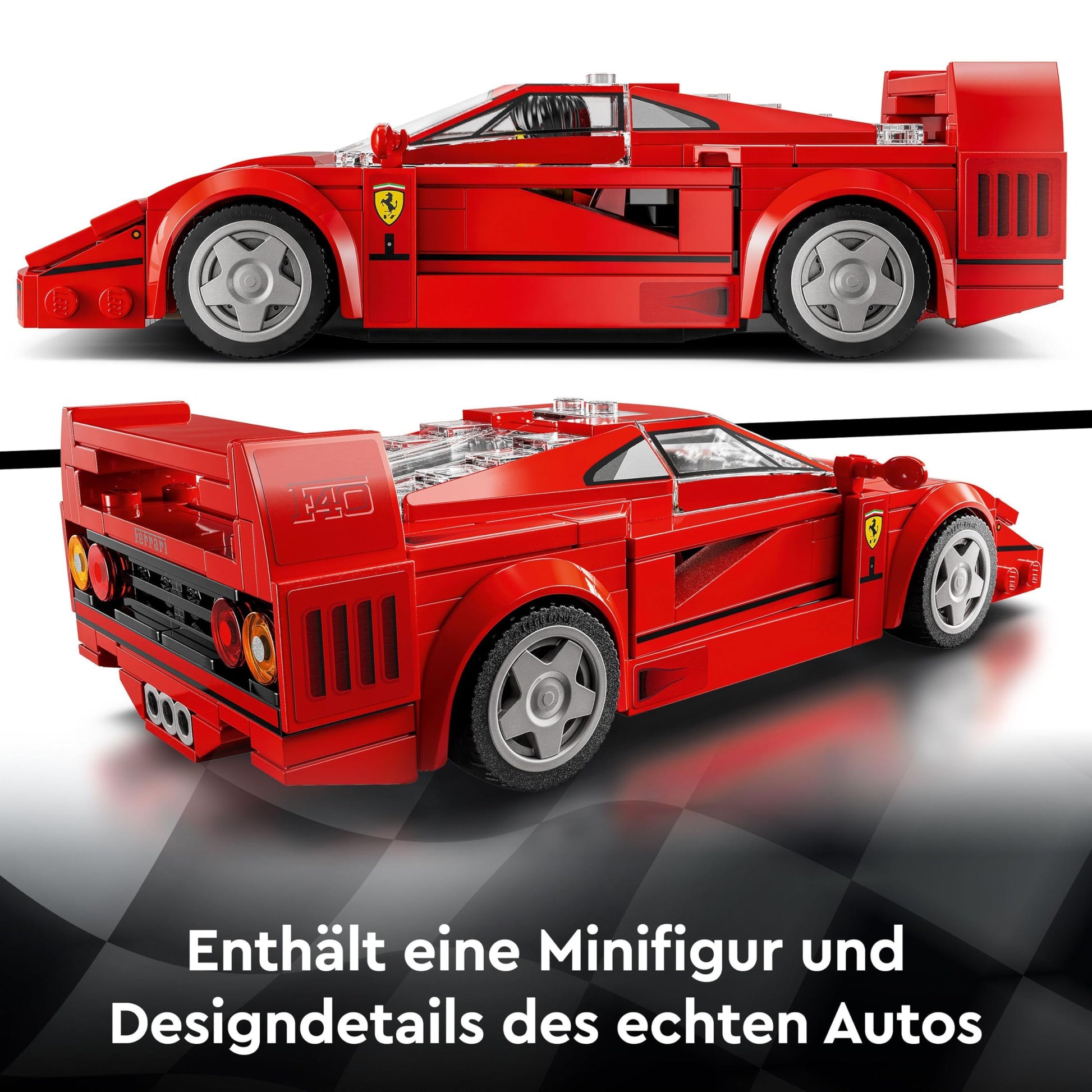 ["Ferrari toy car for kids: The LEGO Speed Champions Ferrari F40 Supercar is a building and playset for boys and girls aged 9 and up, Ferrari fans, and nostalgic car enthusiasts","Includes 1 minifigure: The set includes a Ferrari racing driver minifigure with helmet, hairpiece, and wrench that kids can put behind the wheel and send off on exciting races","Legendary Ferrari details: The LEGO toy car not only features the rear spoiler, the snout, the exhaust pipes, the rims, and the air intakes of the real F40, but also its interior with gearbox and red seats","Premium display model: After kids and Ferrari fans have sent the Ferrari F40 toy race car off on exciting races, they can display the attractive car model on the bedside table or on the shelf","Toy Ferrari for gifting: Car sets provide a fascinating building and playing experience and are a great LEGO gift idea for kids ages 9 and up as well as for adults who collect model cars","For even more exciting races: Be sure to check out the other separately available LEGO Speed Champions sets with many realistic details for even more fun and building options","Legendary toy cars for playing and displaying: LEGO Speed Champions building toys allow children and car enthusiasts to create replicas of some of the world's most famous cars"]