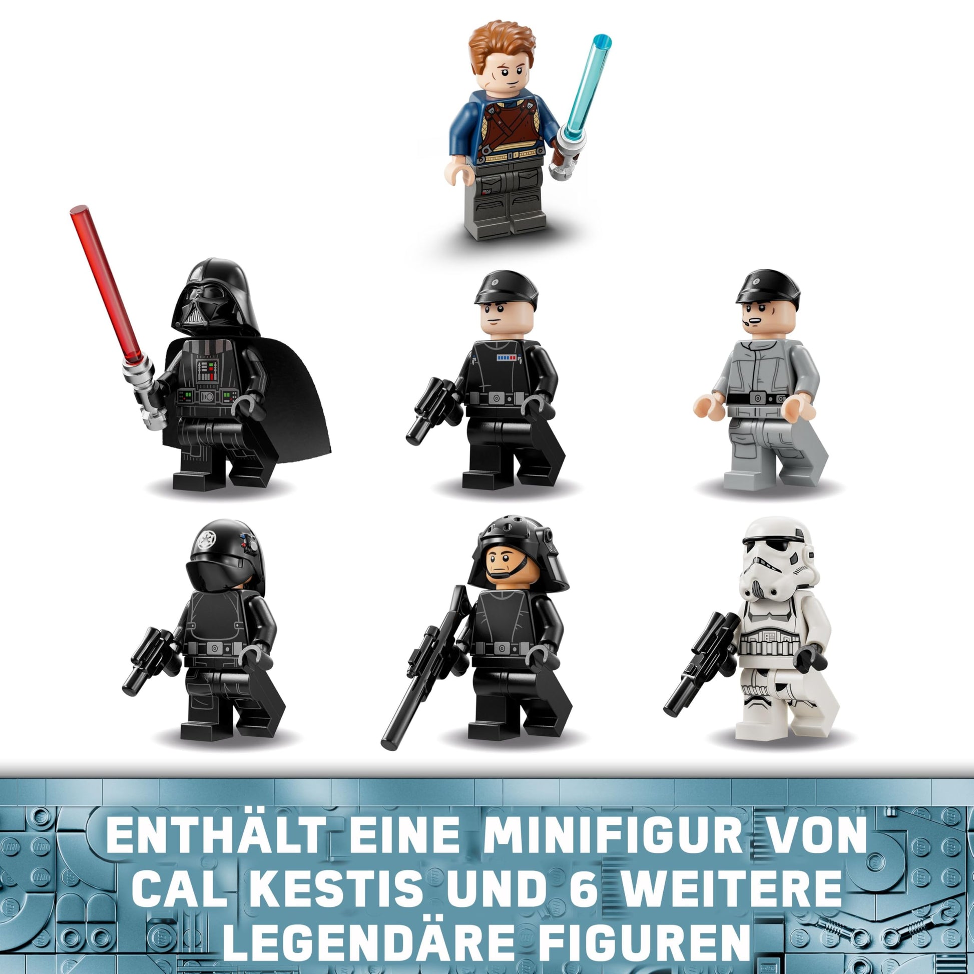 ["Imperial Star Destroyer: LEGO Star Wars Playset for Kids: With this building toy, you can construct a detailed Imperial Star Destroyer from LEGO bricks and recreate legendary scenes from Star Wars: A New Hope", "7 LEGO Star Wars Mini-Figures: Included are Darth Vader, Commander Praji, an Imperial Gunner, an Imperial Navy Trooper, and Cal Kestis as a mini-figure for the 25th anniversary of LEGO Star Wars", "Build your own Star Wars starship: The hidden fold-out handle allows the spaceship model to fly, 2 shooters invite play, and thanks to the removable roof and hinged side walls, the interior is accessible", "Creative building and play set: Inside the starship, you'll find the bridge, the command room, a break room, an armory, multiple control panels, and a cargo box with Kyber crystals and thermal detonators", "Gift idea for Star Wars fans aged 10 and up: This collectible, buildable, and playable model is a great Christmas or birthday gift for boys, girls, and all Star Wars fans", "Helpful assistant: In the LEGO Builder app, children can enlarge, rotate, zoom in, and track their building progress of a digital version of the building toy and save their sets", "LEGO Star Wars set for fans of all ages: LEGO Star Wars building toys allow kids and adult fans to recreate classic scenes, invent their own adventures, or display the models built from LEGO bricks"]