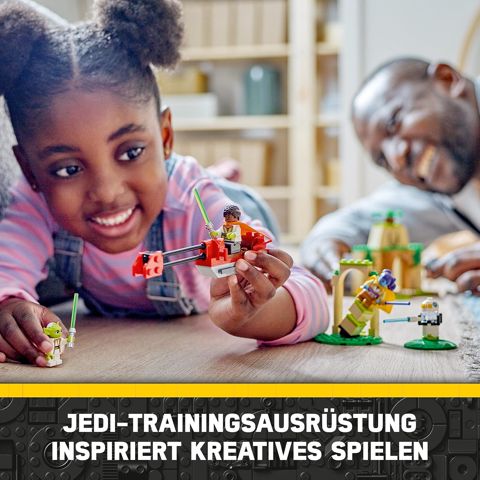 ["Product 1: This buildable LEGO Star Wars set for boys, girls, and all young Jedis aged 4 and up includes a quick-to-build Tenno Jedi Temple and everything kids need to become Jedi apprentices","Product 1: The Tenoo Jedi Temple features a "floating" rock function, a kitchen with a blue milk carton, bunk beds with a folding ladder, 2 clips for lightsabers, and a crystal element","Product 1: Also included is a buildable Speeder Bike with room for 3 Star Wars minifigures, a training droid, and a balance test to spark children's imaginations","Product 1: Includes 3 LEGO Star Wars minifigures: Lys Solay and Kai Brightstar with medium-length legs, as well as Master Yoda with shorter legs; each figure has a lightsaber for Jedi training","Product 2: The LEGO Star Wars Ahsoka's Clone Trooper of the 332nd Company - Battle Pack for kids aged 6 and up includes a Speeder with a shooting function and Clone Troopers of the 332nd Company for fans to recreate epic Star Wars: The Clone Wars scenes","Product 2: Includes a Clone Infantry Support Speeder with seating for 2 LEGO Star Wars minifigures, clips for their blasters, 2 shooters, and a laser cannon with a shooting function","Product 2: Includes 4 LEGO Star Wars figures: Clone Captain Vaughn with a special helmet and 3 Clone Trooper minifigures of the 332nd Company with a blaster rifle, 3 blasters, and 2 rocket packs","Product 2: With the LEGO Builder App featuring intuitive zoom and rotate functions, you can now provide your young builder with an even more fantastic building experience"]