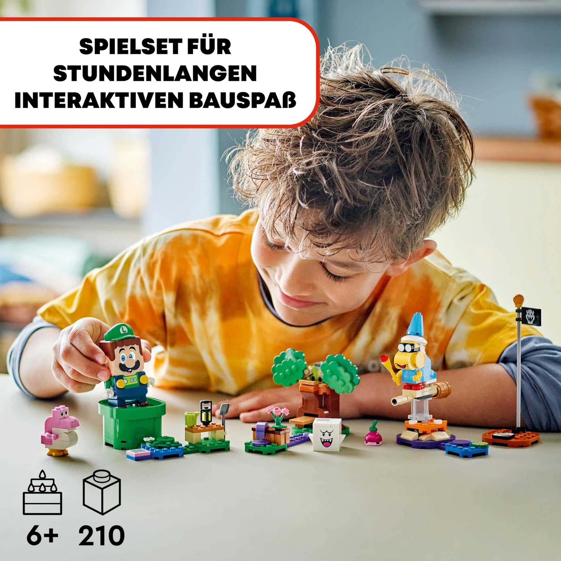 4 LEGO Super Mario Figures: This Nintendo collection and playset includes the interactive LEGO Luigi, as well as three minifigures - Kamek, a Baby Yoshi, and a Boo.