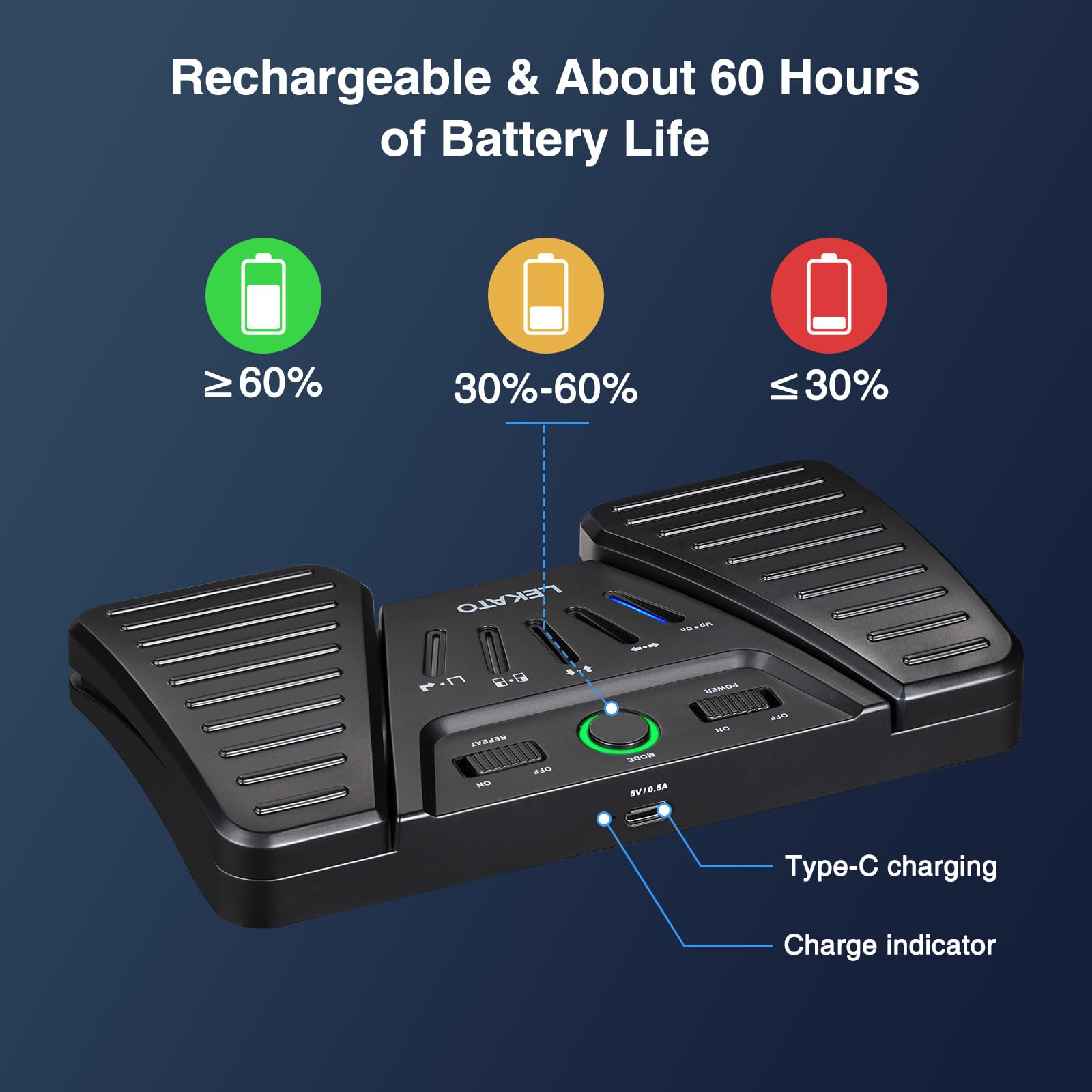 ["Wireless Connection, Hands Free: LEKATO Page Turner with 33 ft stable Bluetooth connection range sets you free to practice. It helps you get rid of the constraints of cables, so you can play instruments without interruptions, improving focus and performance integrity","Rechargeable & 60 Hours Operating Time: Built-in rechargeable battery with long lifespan. You can recharge the pedal anytime with a USB-A to Type-C cable, it can be used for up to 60 hours after a full charge","Five Modes for Page Turning and Repeating: JSP-01 foot switch with five common functions for scrolling up and down, left/right arrow, up/down arrow, swipe left/right, swipe up/down, and repeat. It can take control of reading notes and scores or control multimedia platforms, phone, tablet, or PC","Silent Pedal Turner: JSP-01 is a super quiet page turner designed specifically for studios and concert halls. Play and practice without interruption, ideal for guitarists, pianists, violinists, cellists, and beginners","Versatile Compatibility: JSP-01 is compatible with Windows, macOS, iOS, and Android operating systems. Supports most apps on the market, such as OnSong, piaScore, iBooks, Goodnotes, Apple Books, ForScore, Music Reader, etc","Ergonomic Design & Anti-Slip: The page turner follows ergonomic design for a more comfortable foot feel. The anti-slip pad on the bottom ensures the page turner stays anchored to the ground and does not slip while in use"]