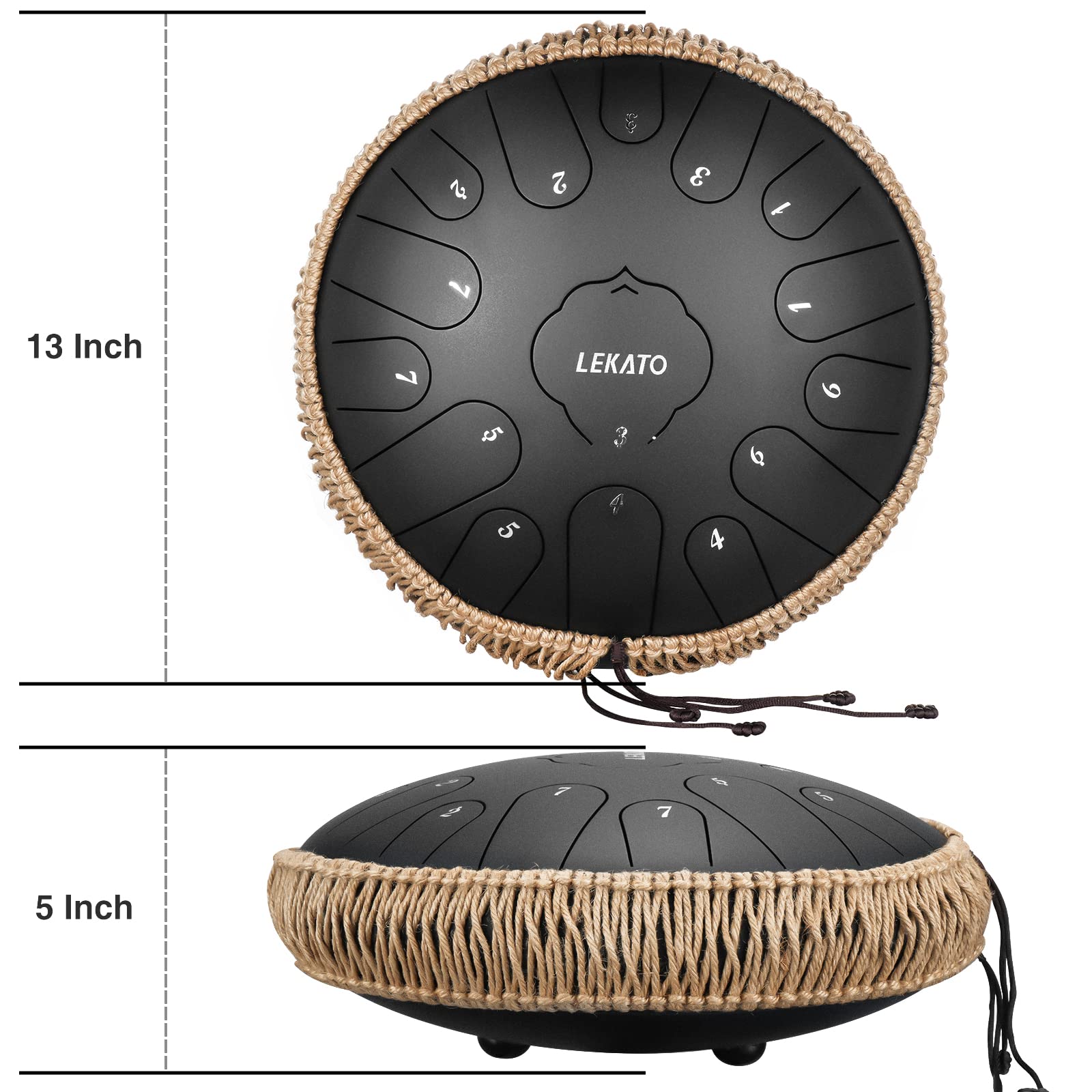 LEKATO Steel Tongue Drum, 13 inch, 15 Notes, Key of C, Handpan Drum with Carrying Bag, Percussion for Meditation, Yoga, Music Lessons, Black.
