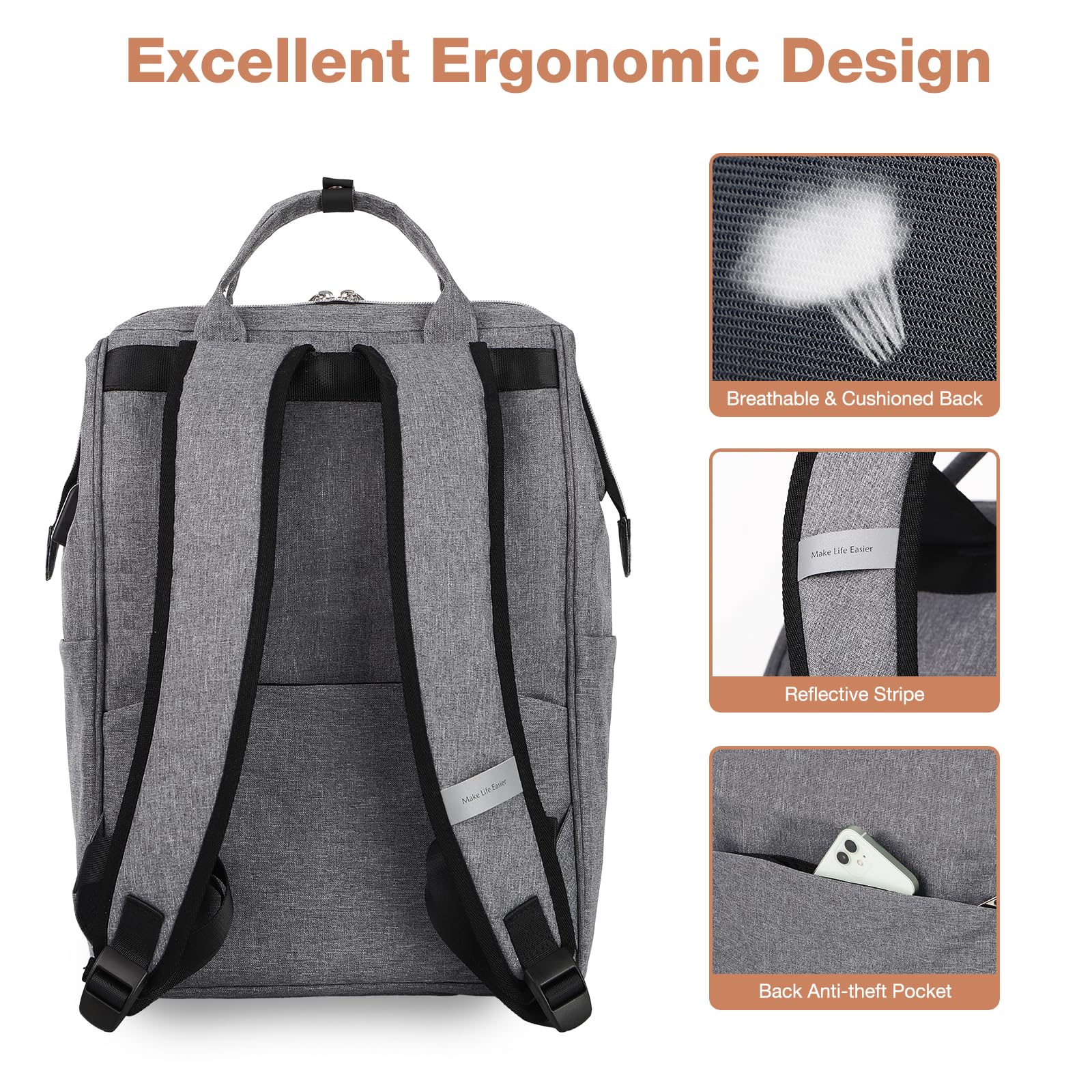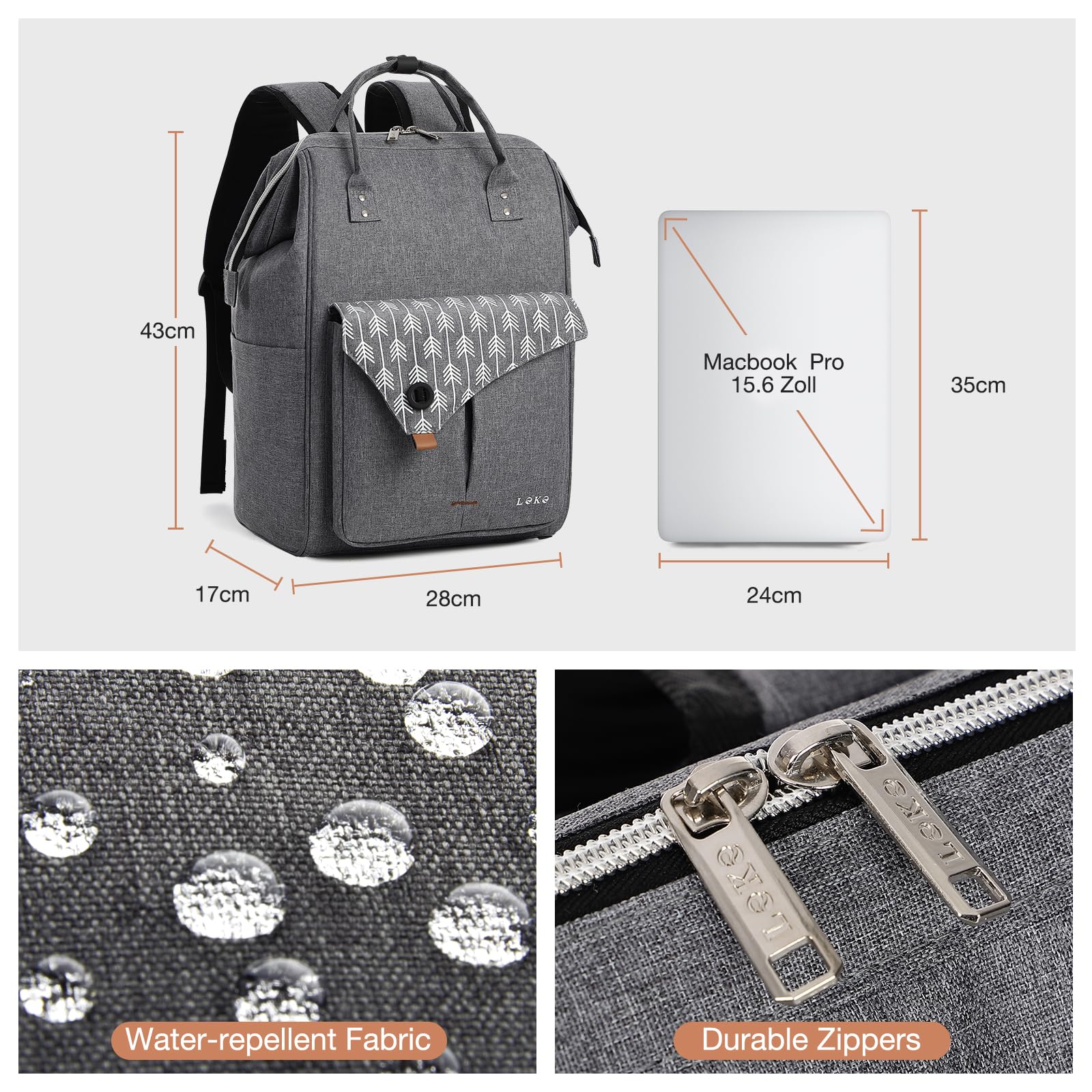 Lekesky backpack designed for women with laptop compartment & anti-theft pocket, fits up to 15.6 inch laptop. Perfect for work or school. (Grey)