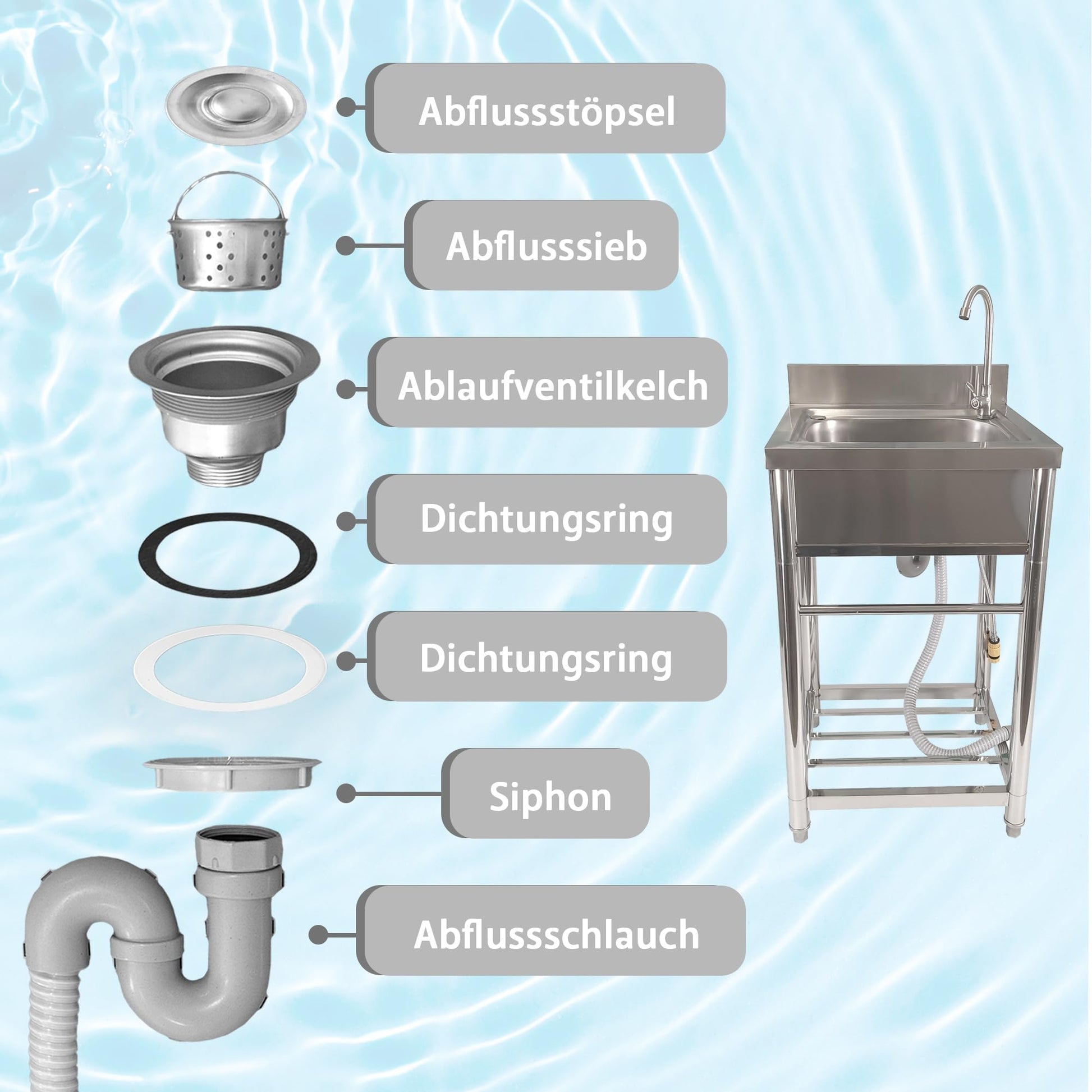 ["VERSATILE USE FOR OUTDOOR KITCHEN AND GASTRO – The freestanding sink unit from Lemodo is ideal for use in outdoor kitchens, gastronomy establishments, and while camping. Its mobility and functionality make it the perfect companion for those who value flexibility and hygiene.","STAINLESS STEEL CONSTRUCTION FOR DURABILITY – Made of high-quality stainless steel, this sink unit provides a sturdy and long-lasting solution for your washing needs. The freestanding kitchen sink is resistant to rust and easy to clean, making it particularly hygienic and easy to maintain.","INTEGRATED FAUCET WITH GARDEN HOSE CONNECTION – Equipped with a faucet with a garden hose connection, the sink unit allows for flexible use in different environments. This is especially beneficial in areas without fixed water installation.","PRACTICAL SHELF FOR ADDITIONAL STORAGE SPACE – The sink unit features an integrated shelf that provides additional storage space for kitchen utensils or cleaning supplies. This significantly increases efficiency and organization in your kitchen or workspace.","EASY ASSEMBLY AND MOBILITY – Thanks to its well-thought-out design, the sink unit can be quickly and easily assembled. Its freestanding construction allows for flexible use in various locations, whether in gastronomy, in the garden, or while camping."]