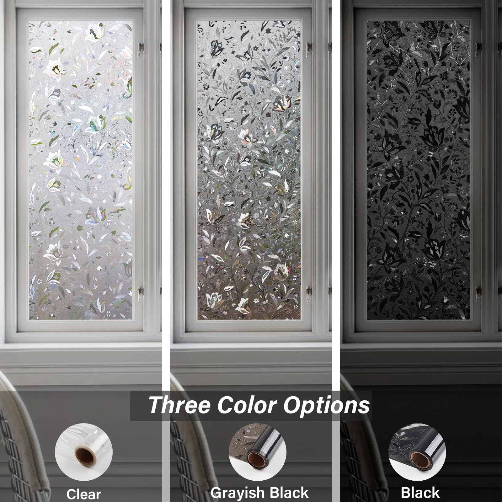 LEMON CLOUD Rainbow Static Cling Window Film, Privacy Window Film, Anti-UV Sun Protection Film for Living Room, Grayblack Tulip - 90x400cm