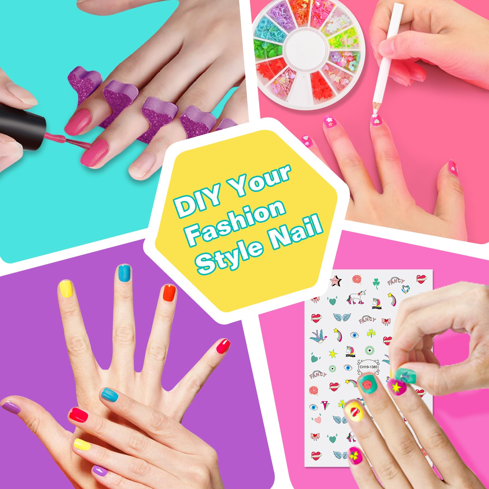 ["Girls gifts 6 7 8 9 10 11 12 years old: 7 colors of water-based nail polishes, Peel off non-toxic nail polish, can be easily removed from nail, safe for children to play with. Comes with storage table, can be kept clean and tidy. Birthday gifts for girls 6 7 8 9 10 11 12 years old, Girls can always change different DIY manicures and colors to gain a rich sense of experience."]
