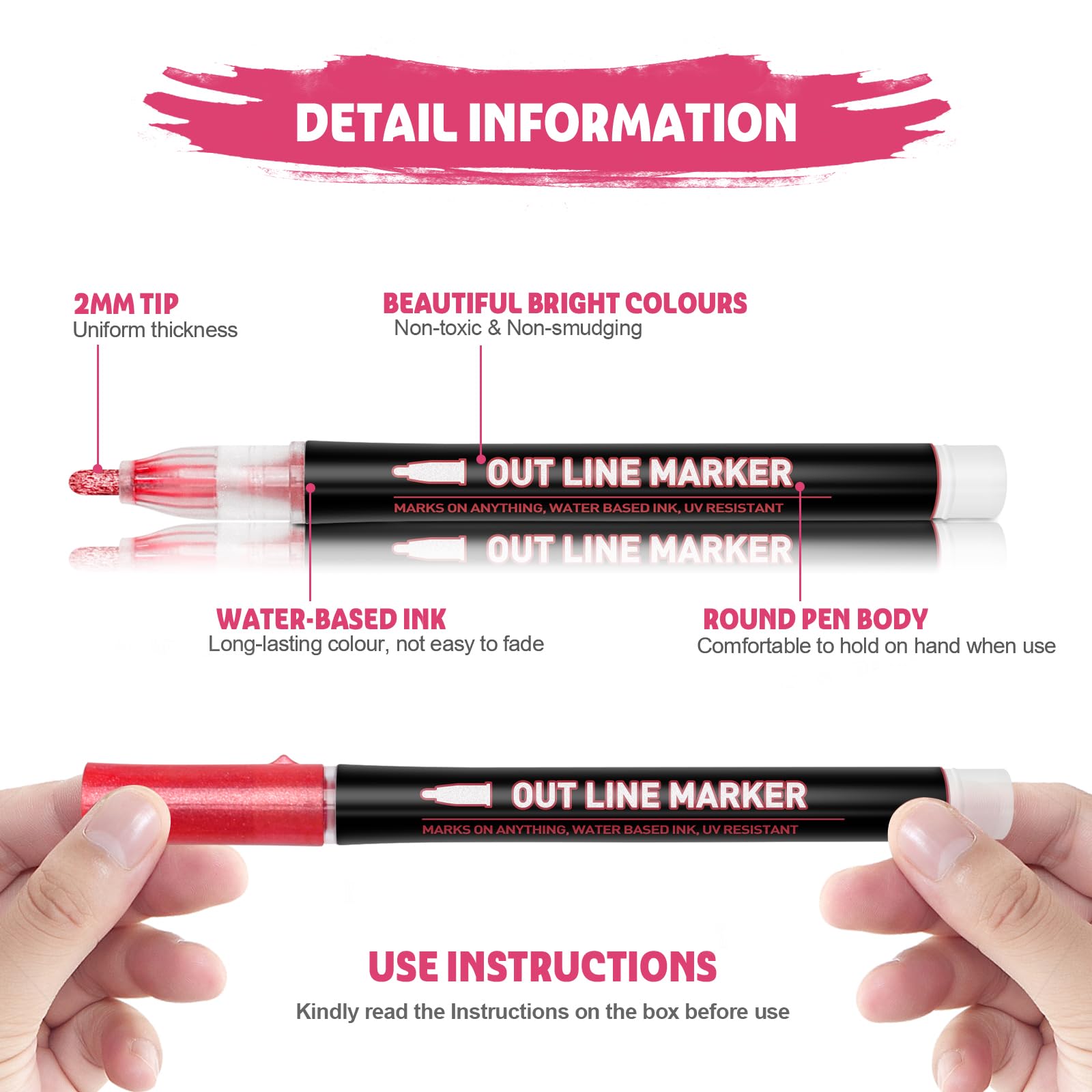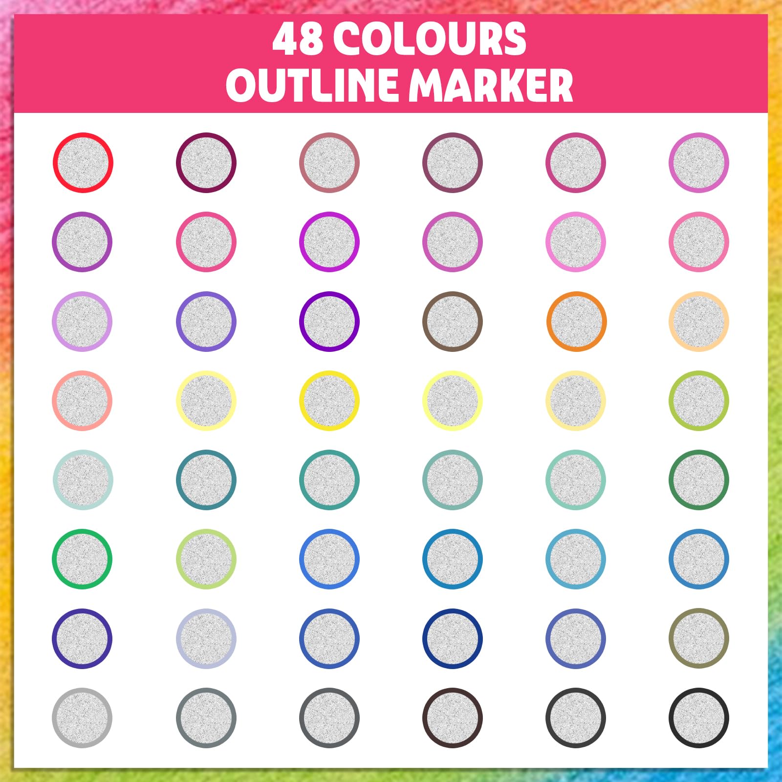 ["Best Gifts for Kids and Adults - Lenski Outline Pens Set is the best gift for your children. Kids will love drawing with Lenski glitter pens. With Lenski glitter pens, you can create many decorations for Christmas, Halloween, Easter, Thanksgiving, birthday parties, and the list goes on.","48 Vivid Colors - Lenski glitter pens come in 48 unique colors, with a magical double-line outline effect. The shiny ink can be used to achieve vibrant colors and add a sparkling shine. Great for craft and DIY projects.","Edge Contouring - The unique technology automatically creates contours. When writing on light or white paper, you can draw two lines at the same time with a glittering silver fill in the middle. When writing on dark or black surfaces, it shows primarily the silver color on smooth surfaces. Painting on objects that ink cannot penetrate, such as stone, plastic, glass, shows a single outline color.","High-Quality & Safe Material - Lenski glitter pens feature a scientific ink formulation and a safe production process. Ink is stable and lightfast, dries quickly, and does not fade over time. High-quality materials ensure absolute safety for the user. It is necessary to use more than 80g paper for writing, which can effectively prevent ink penetration.","Versatile Use - These glitter pens can be used for drawing, doodling, writing, and coloring in various creative activities. They are also perfect for children's and girls' coloring books, wedding gift cards, photo albums, scrapbooking, and DIY decorations. Additionally, they are suitable for almost all surfaces such as stone, glass, wood, plastic, metal, whiteboard, and ceramic."]