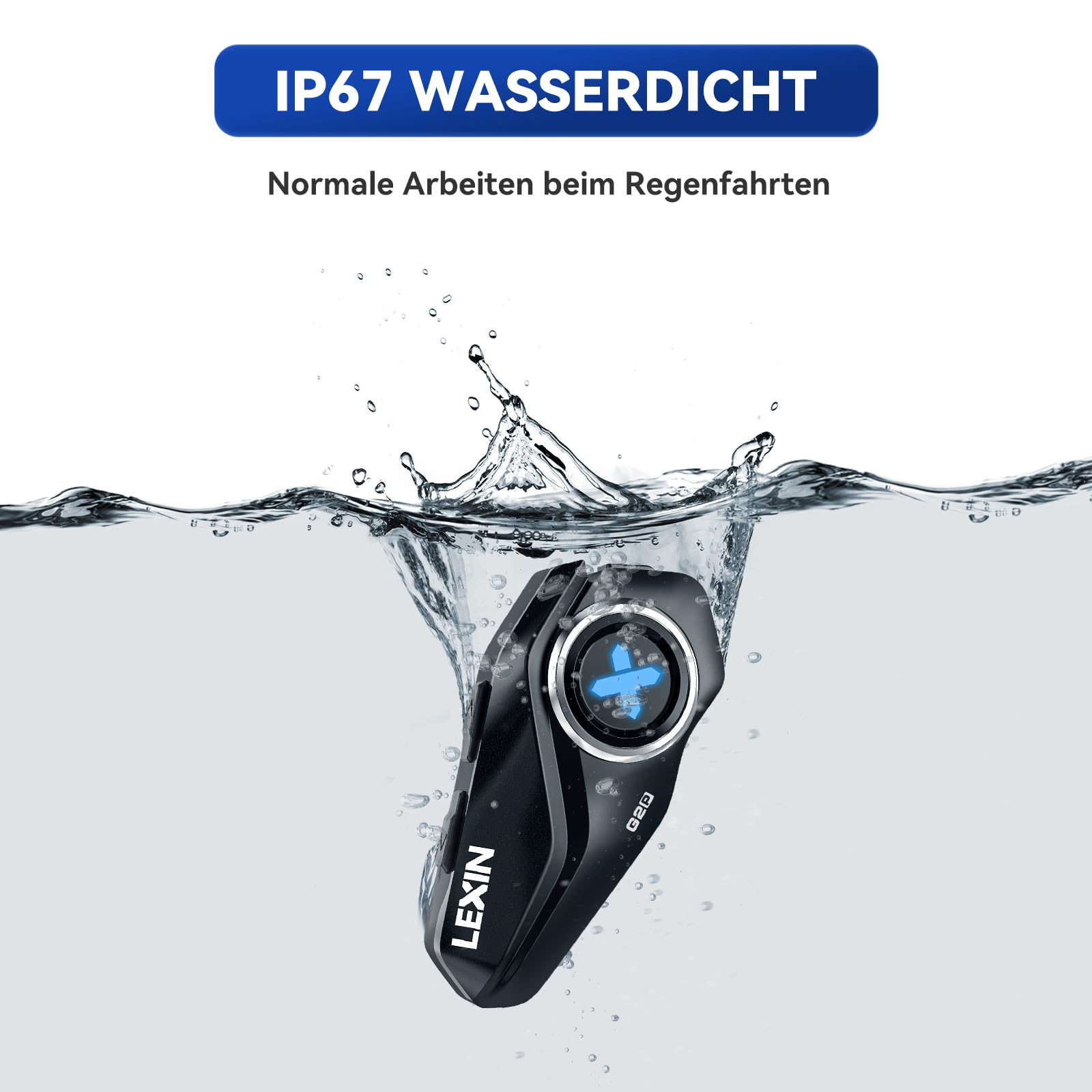 LEXIN G2P Motorcycle Bluetooth Headset, Helmet Communication System for 2 up to 6 people within 1000m range, IP67 Waterproof Hands-Free calling with FM Radio, Single Pack.