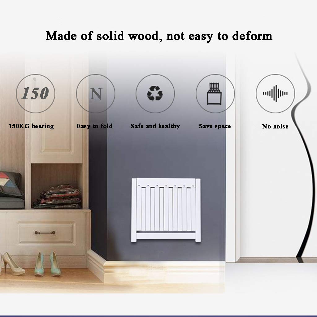 LFIEVO Folding Chair Wall-Mounted Shoe Changing Stool Balcony Solid Wood Chair 150kg Load-Bearing Easy Installation Space-Saving Multifunctional Stool (White)