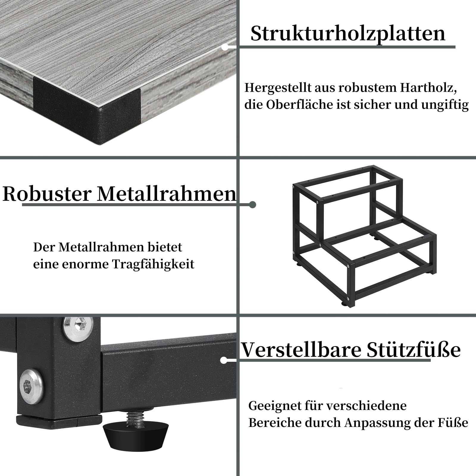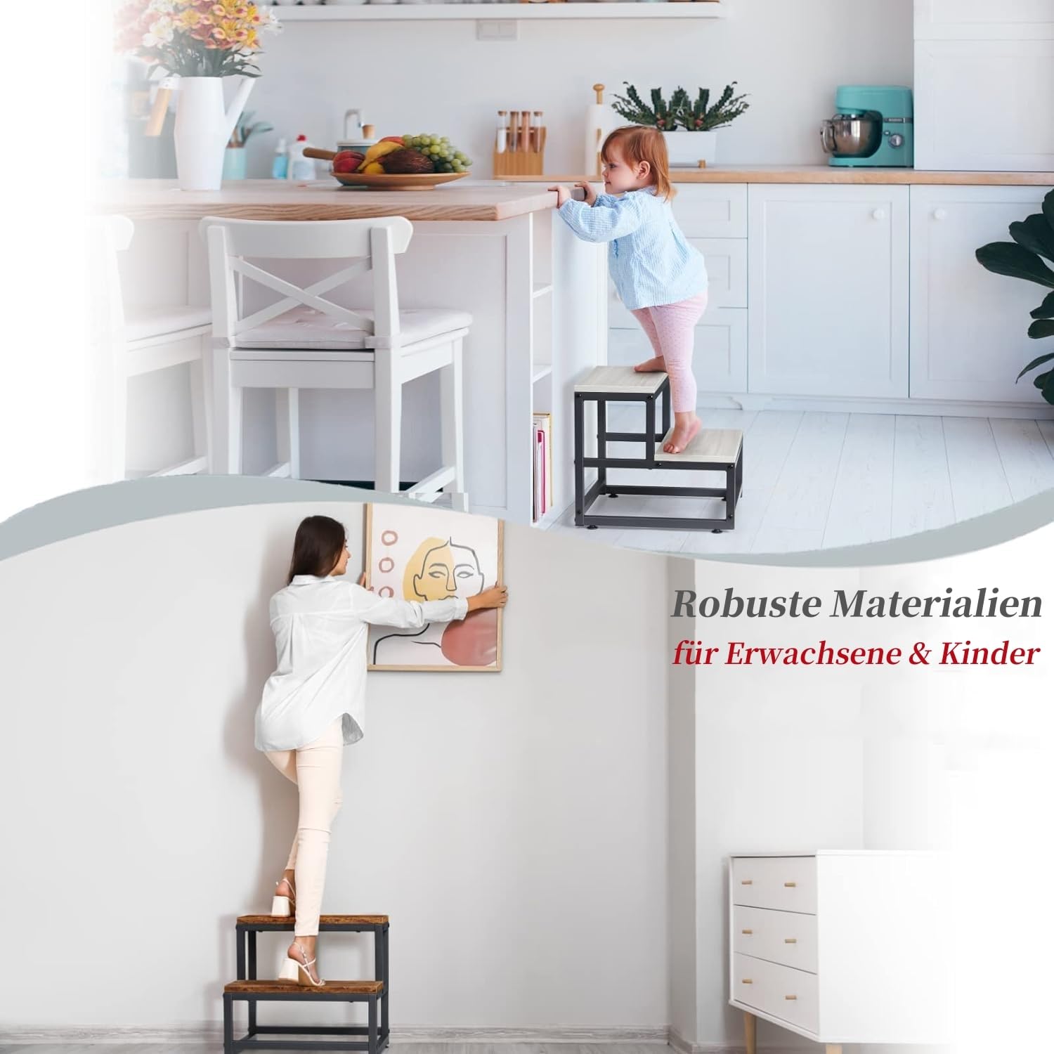 LIANTRAL Step Stool for Adults and Kids, 2-Step Stool, Heavy Duty Steel and Stable Wooden Stool, Holds up to 200KG, Step Stool for Bed, Kitchen, Bathroom, Grey