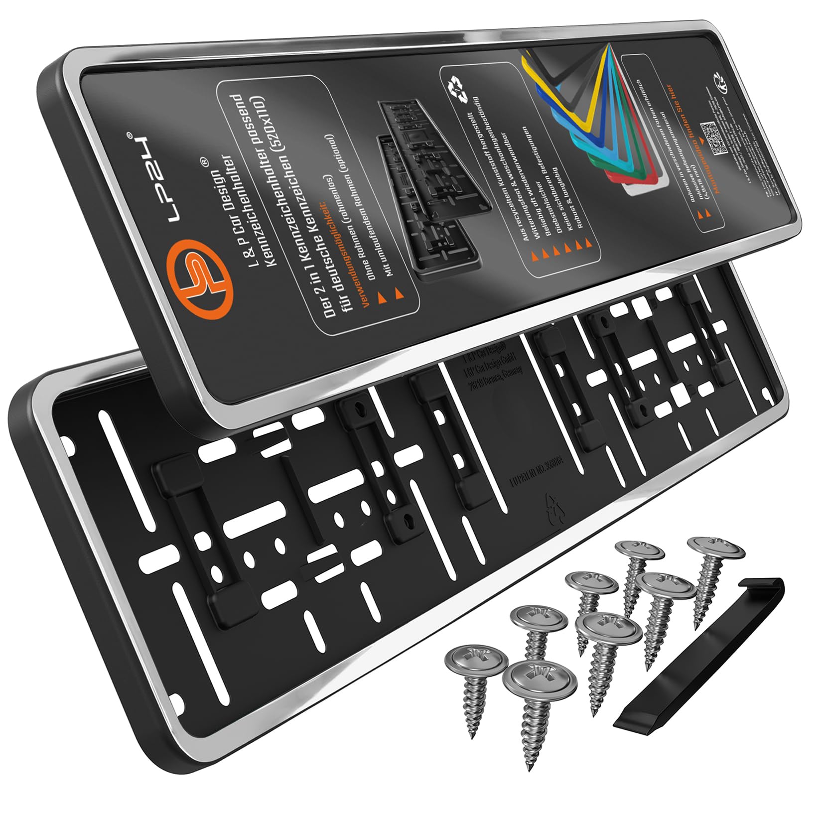 ππππππ₯π¨π πππ‘π β€ 2 pieces of license plate holders with frame // 8 x mounting materials // 1 x mounting hook // 1 x installation manual + installation video online",""]