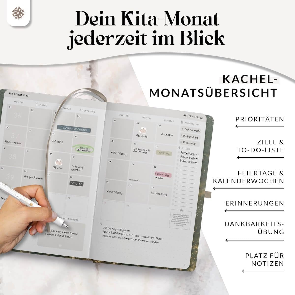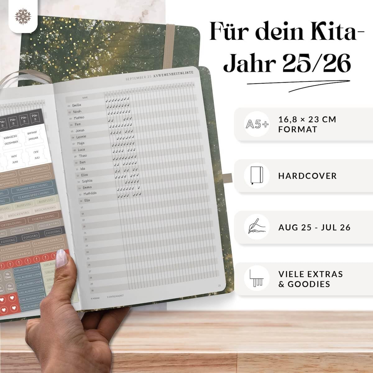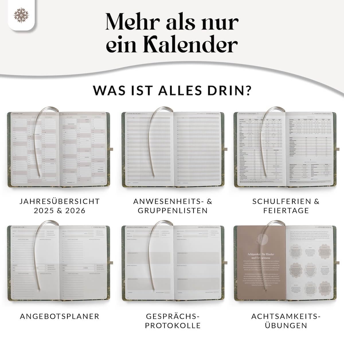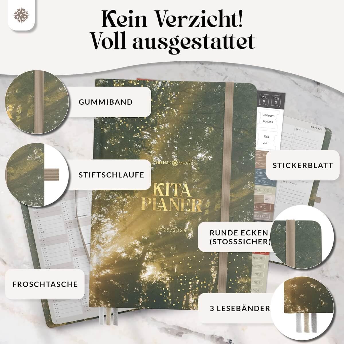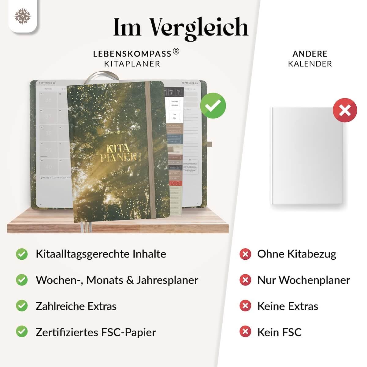 "ORGANIZED & MINDFUL: The Life Compass Preschool Planner accompanies you from August 2025 to July 2026 with clear monthly and weekly overviews. In between, you will find small mindfulness impulses for more ease in your preschool daily routine."