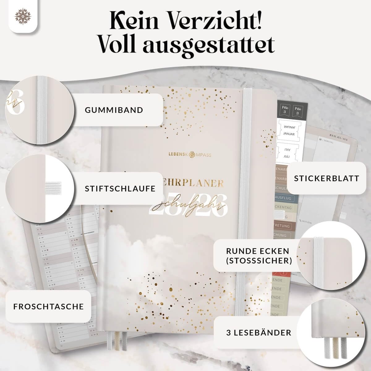 Life compass teacher planner 2025 2026 DIN A5+ "Cloudy" Hardcover school planner for lesson preparation - ideal planner for teachers.