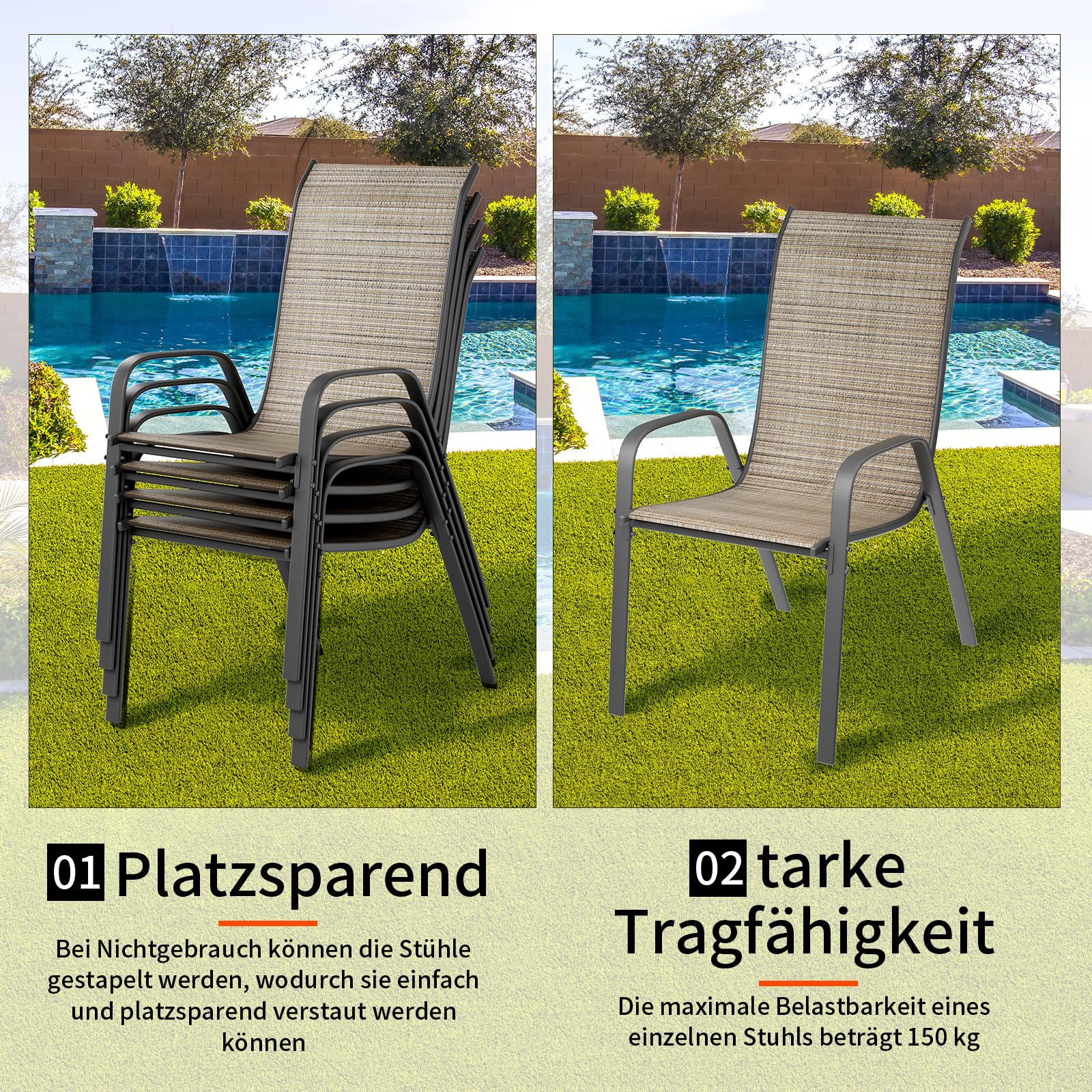 LIFERUN garden chairs stackable camping chair high back terrace chair textilene steel frame for gardens courtyards balconies restaurants 150 kg capacity 54 x 69 x 93cm (4pcs, flax brown)