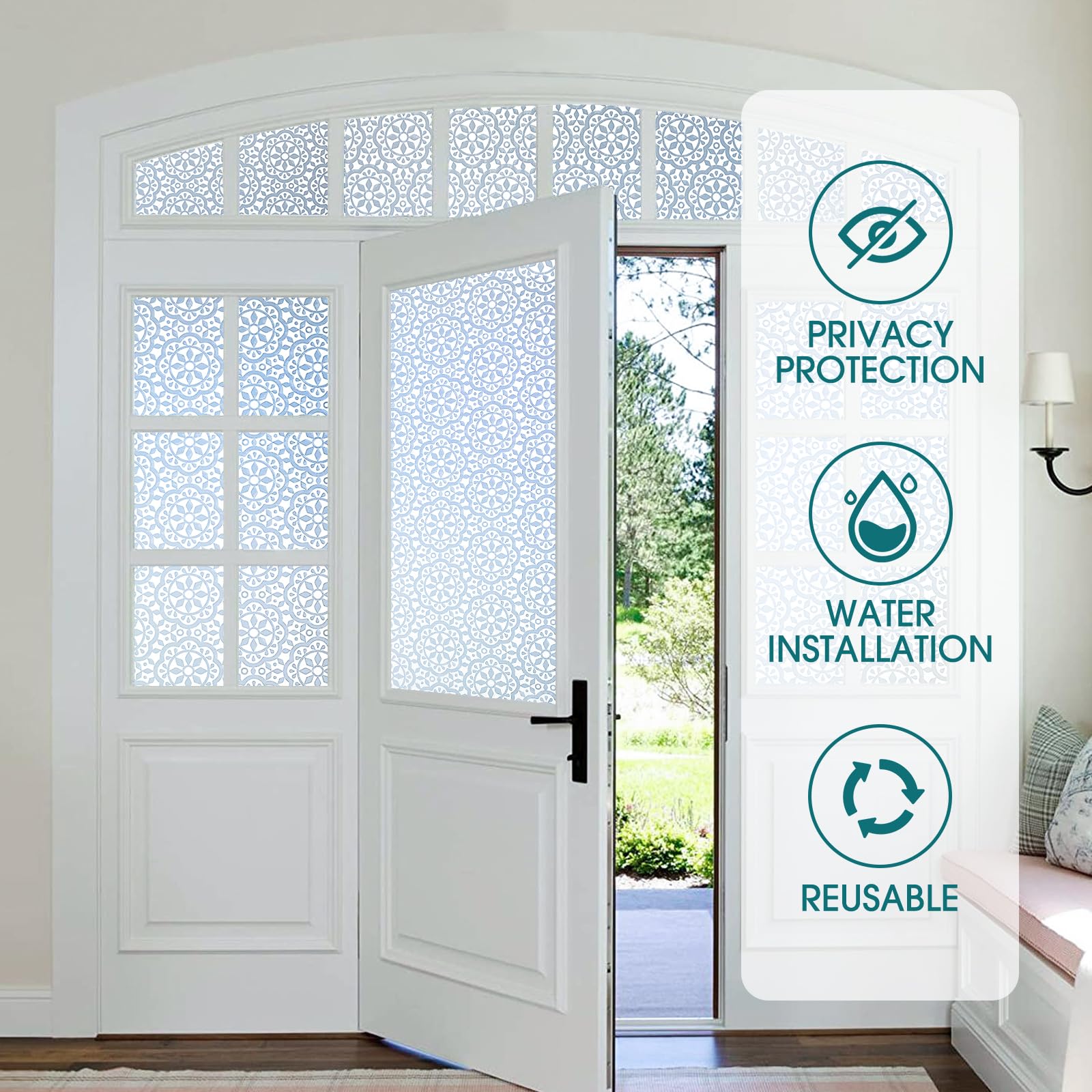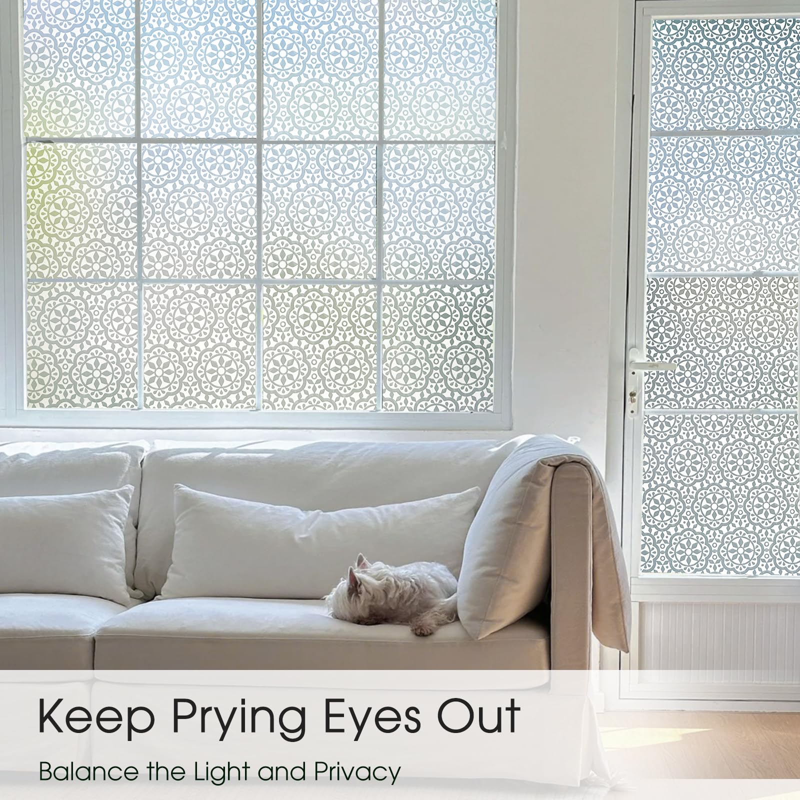 "High privacy screen protection: This Lifetree frosted window film is opaque and offers you good privacy and screen protection. At the same time, the glass sticker lets light pass through. White floral pattern can be used for window decoration and is very popular with children.