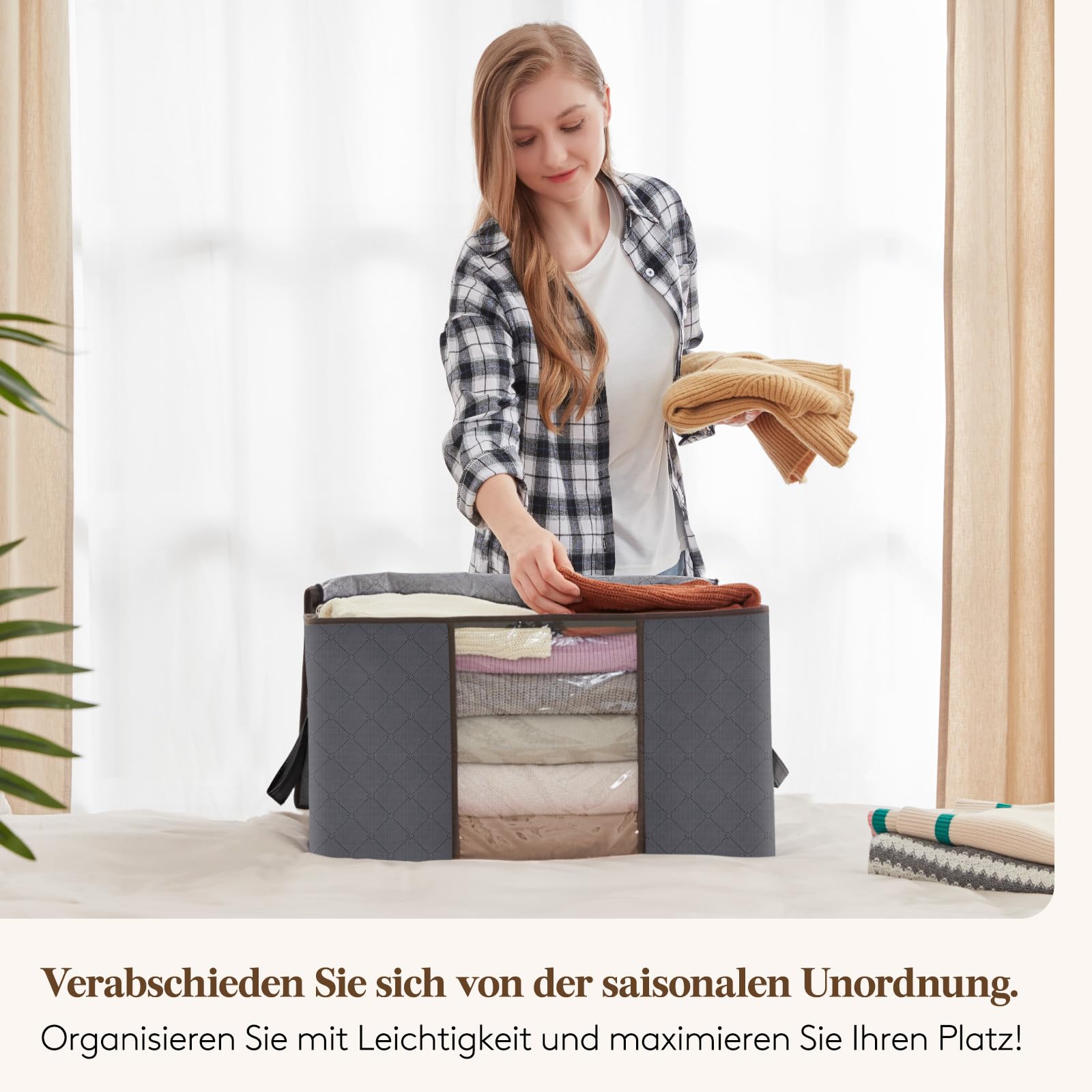 "Multiple storage bags in the package: Each storage bag measures 21.7" x 13.8" x 12.4" and holds 60 liters. You have the option to choose between a 4-pack, 6-pack, and 8-pack. With so much space, you can easily store winter clothing, sweaters, pillows, blankets, and duvets. Ensure order and cleanliness in your home.