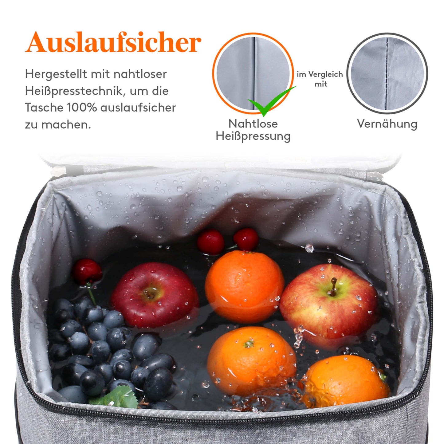 "VERY GOOD INSULATION: The interior lining of the cooler bag is made of food-safe PEVA and is padded with 7mm EPE foam. The thick, high-quality insulation keeps your food and drinks cool and fresh for hours. So you always have cold drinks and snacks on hand.