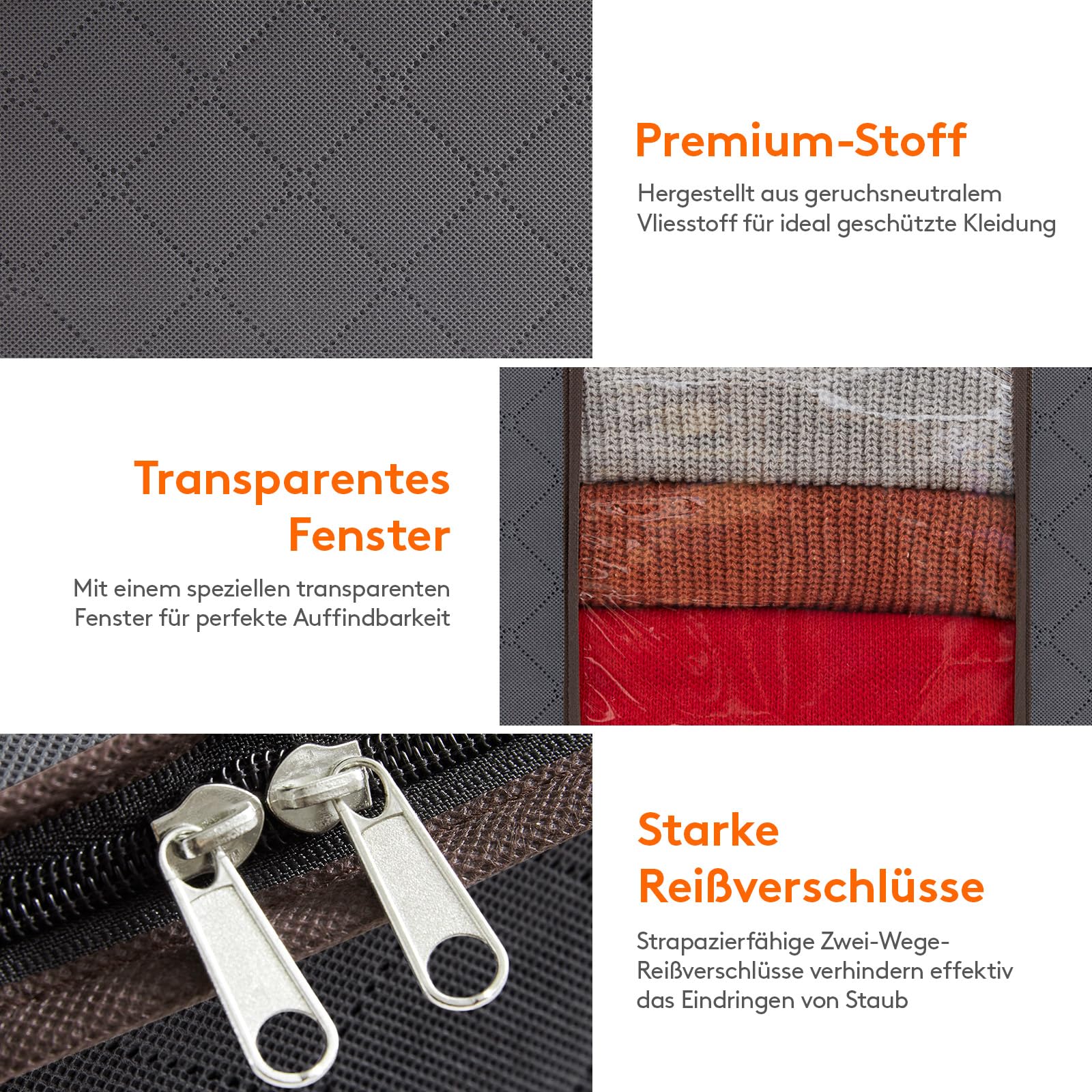 High-quality material: Our clothing storage is made of high-quality, odor-neutral, breathable, non-woven fabric, making it soft and durable. The transparent windows allow for easy identification of contents.