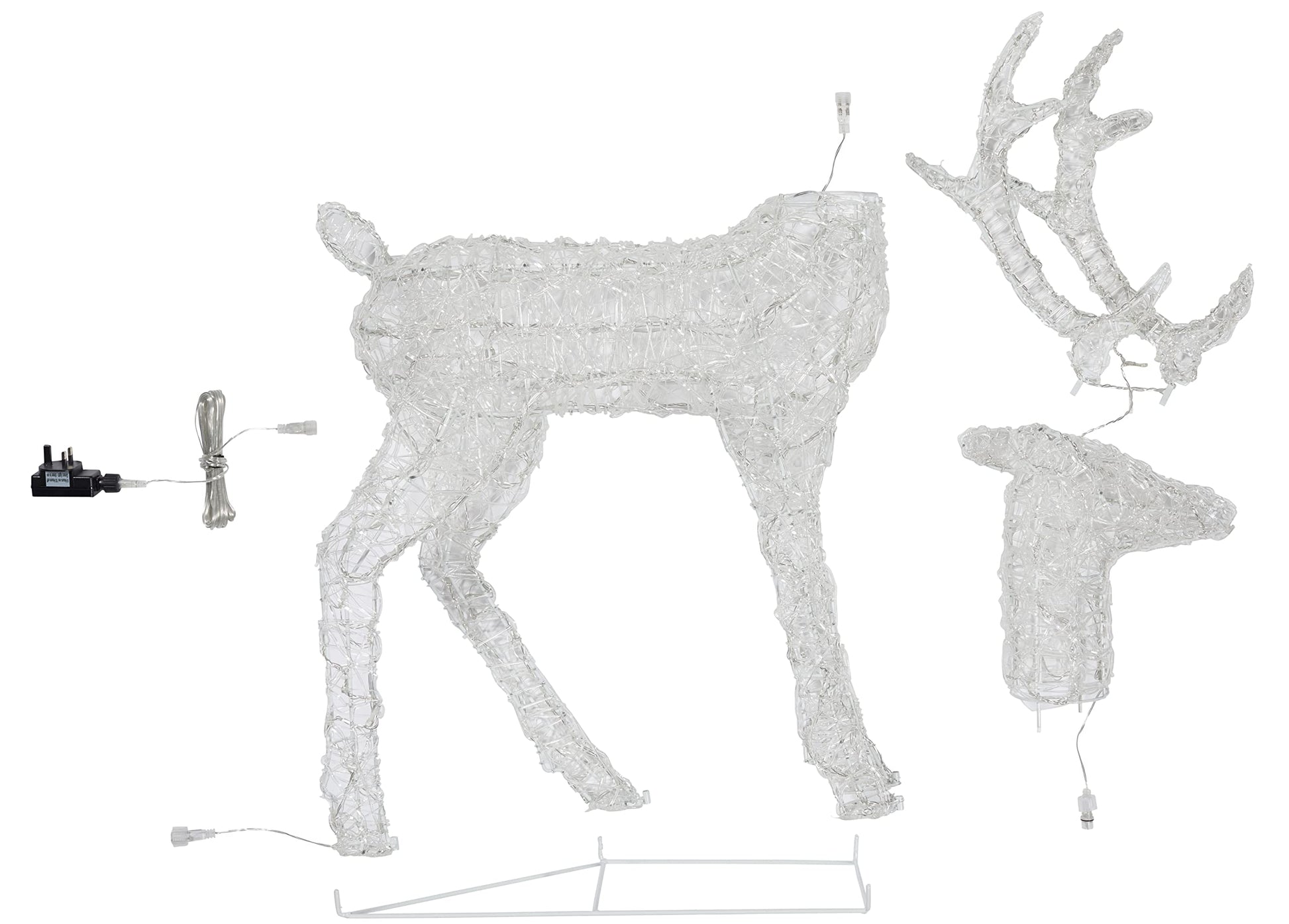 Lights4fun 120cm Swinsty LED Reindeer Figure Acrylic Christmas Decoration White Timer Outdoor and Indoor Reindeer Illuminated Outdoor