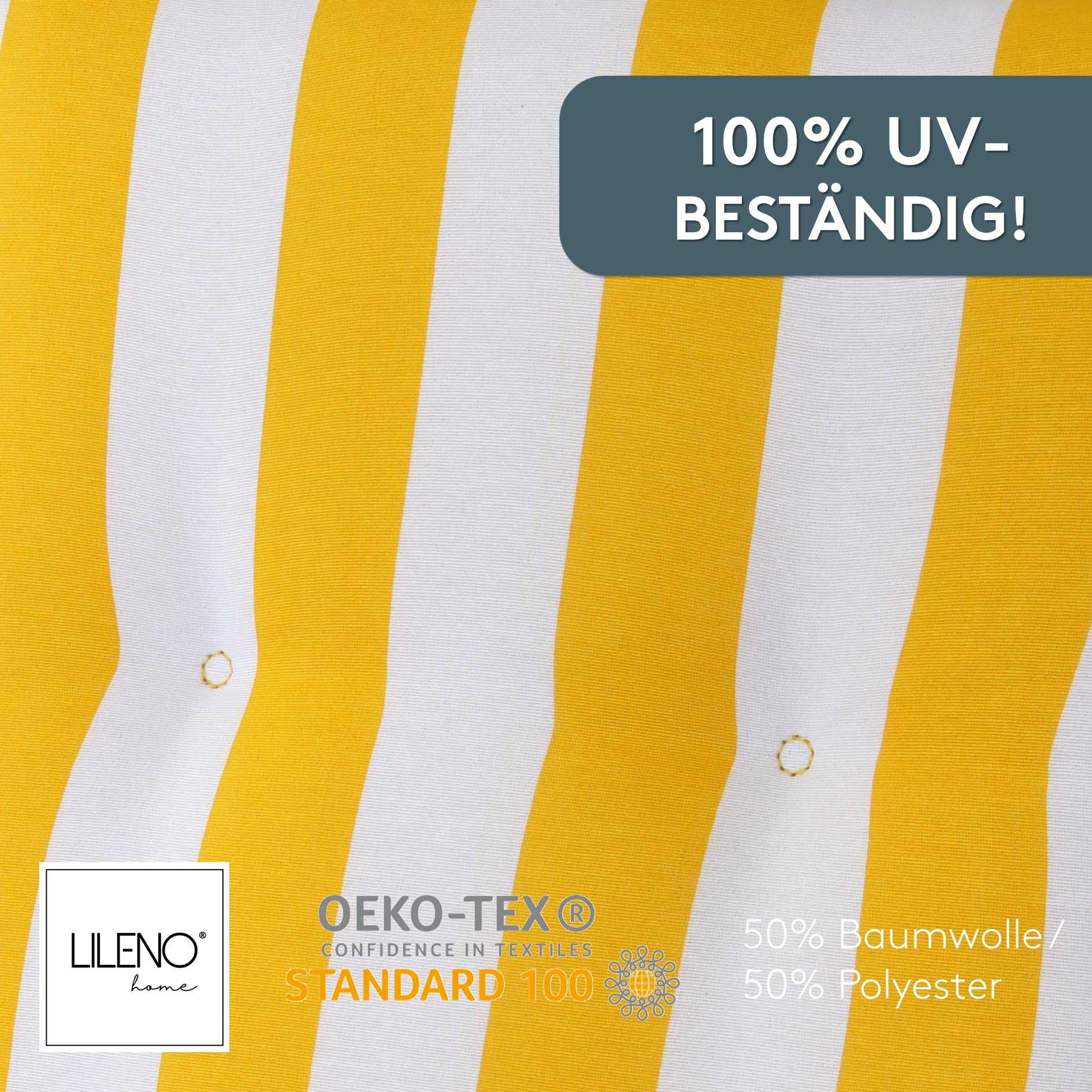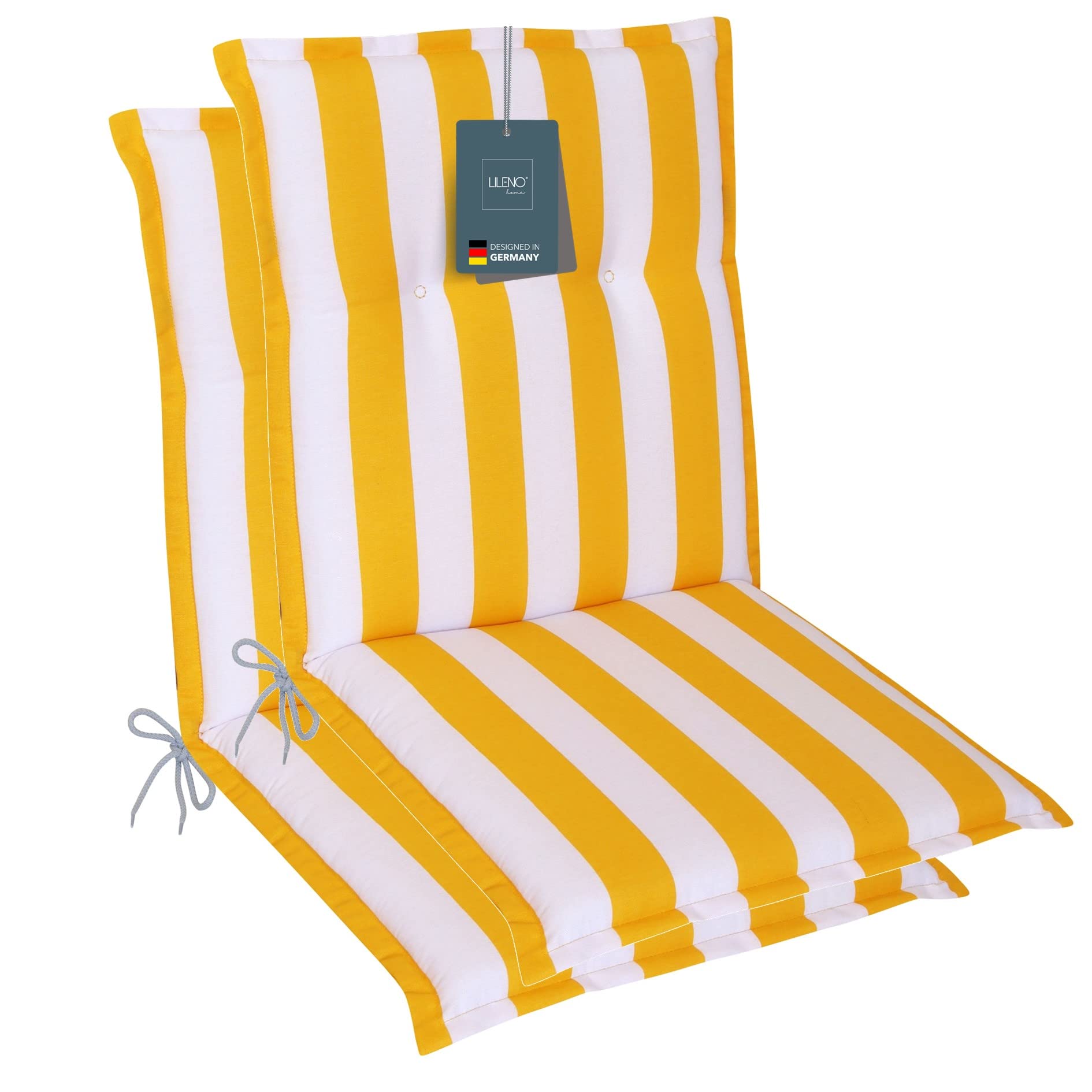LILENO HOME garden chair cushions in yellow block stripes as a set of 2 low-backrests - comfortable lying as seat cushions for garden furniture - chair pads for garden chairs and folding chairs.