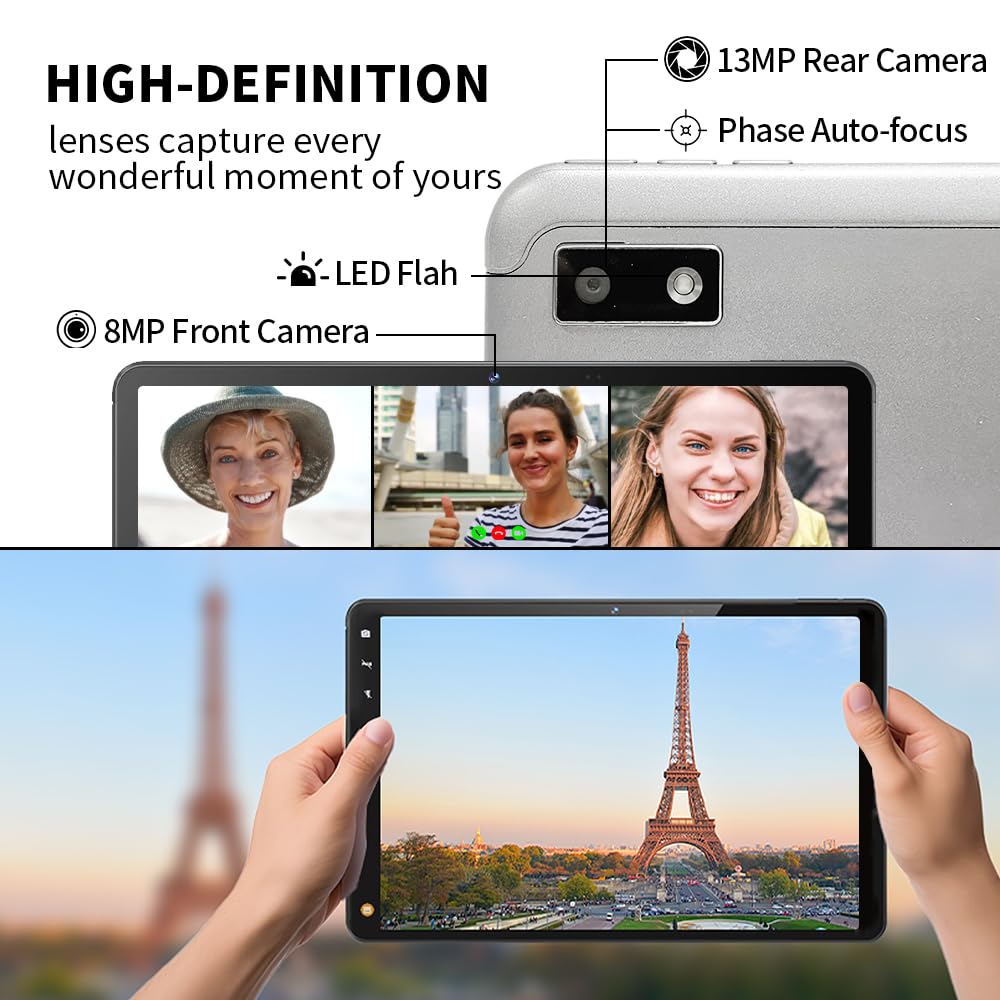 ["【Android 13 Tablet + Octa Core Processor + 128GB ROM】: LincPlus Tablet uses MediaTek Helio G99 (6nm) Octa-Core Processor, allowing you to easily run multiple programs simultaneously and meet all streaming requirements. This expandable storage tablet also features 8GB LPDDR4 RAM, 128GB UFS2.2 storage (supports 1TB expansion). Powerful, more space, less consumption.","【2K HD Display + 4*1W Stereo Speakers】: 10.4inchs large screen tablet with 2000*1200(@224dpi) IPS display, 10-point touchscreen, In-Cell display, 1 billion colors, 60Hz, 330 nits, supports Netflix HD, Prime Video HD. With the tablet's 2K screen and high-resolution 4 HD speakers, the tablet provides an immersive audio and visual experience, whether you're watching a movie or listening to music.","【7000mAh Battery + PD Quick Charger】: The 10.4-inch tablet with a 7000mAh battery can meet the basic requirements of gaming, office work, and video calls. The intelligent tablet PC lasts about 8 hours after full charge and supports fast charging via the Type-C port.","【Compact and Slim + 2.4G & 5G WiFi】: This portable tablet is compact and slim. It features a metal body and narrow bezels. This ultra-thin and lightweight tablet weighs only 460g. Whether you're looking for a work tablet, a reading tablet, a tablet for gaming, a tablet for kids, or a tablet for school or entertainment, our tablet is the right choice.","【Active Stylus Pen】: The LincPlus Smart Tablet with Stylus offers 4096 pressure sensitivity, palm rejection, tilt support, long lifespan, 0.5mm high sensitivity, 5ms low latency, and interchangeable pen tips. Whether you're looking for a drawing tablet or an educational tablet for a child or student in need of a tablet for homework, note-taking, or image editing, this active stylus tablet is the ideal choice for you.","【Warranty + Hassle-free Return and Exchange】: We offer a two-year warranty, 30 days return or exchange for no reason, and 24-hour customer service so you can use our products with confidence. If you have any questions about the product, you can contact us at any time."]