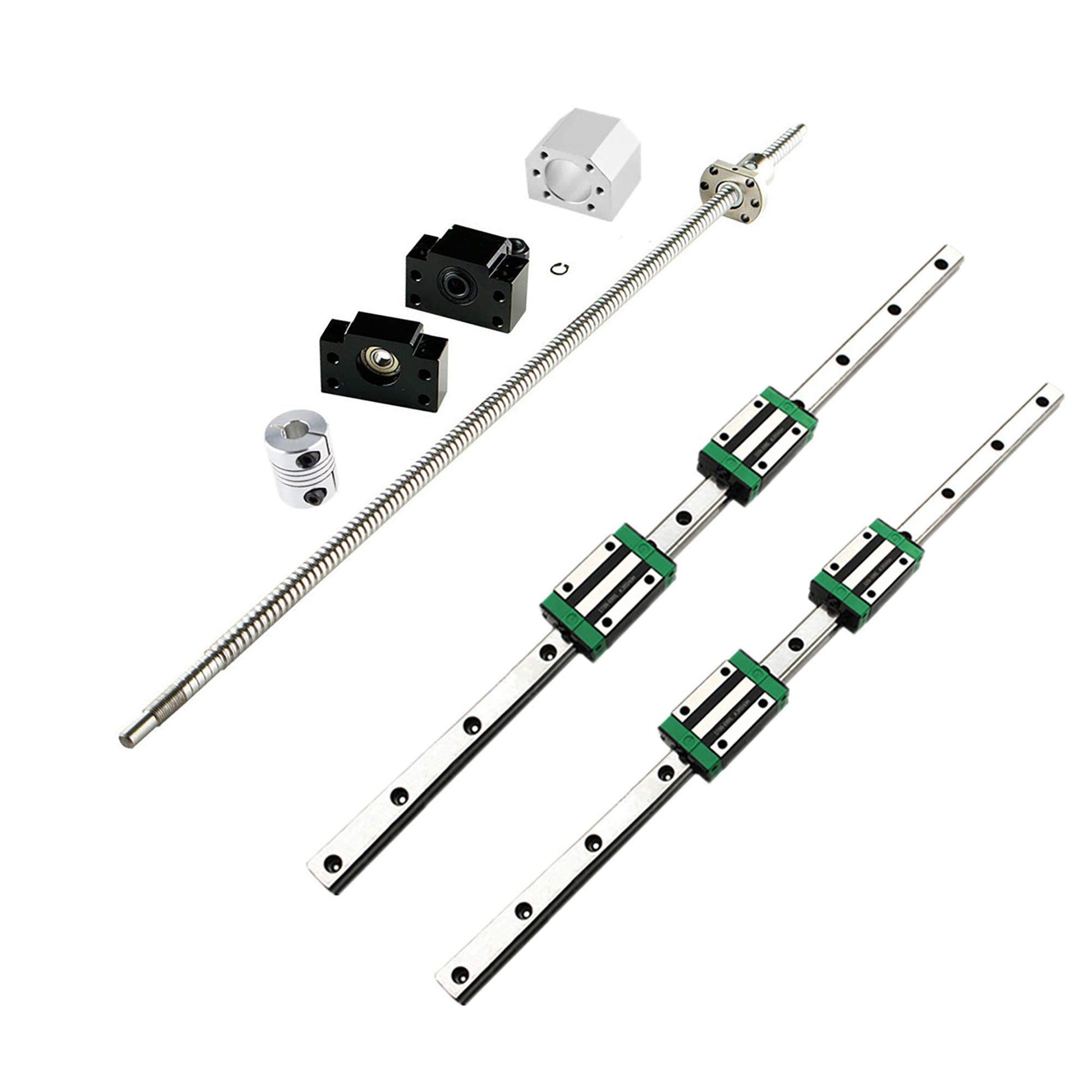 "400MM HGR20 LINEAR RAIL: This linear guide set includes 2 pieces of HGR20-400mm guide rails, 4 blocks, 1 piece of RM1605-450m ball screw, 1 piece of ball nut, 1 piece of BF12/BK 12 side, 1 piece of DSG16H nut housing, and 1 piece of coupling.