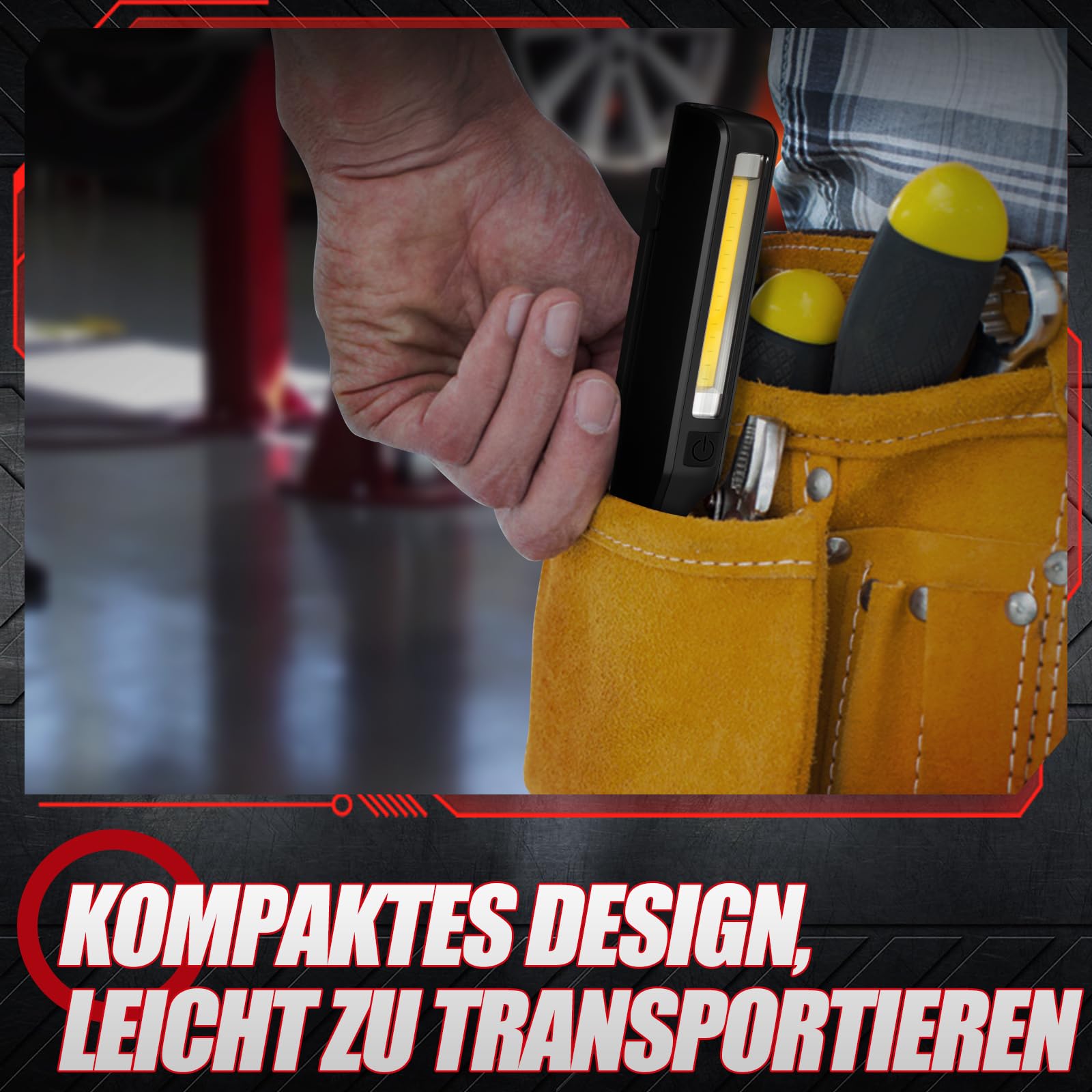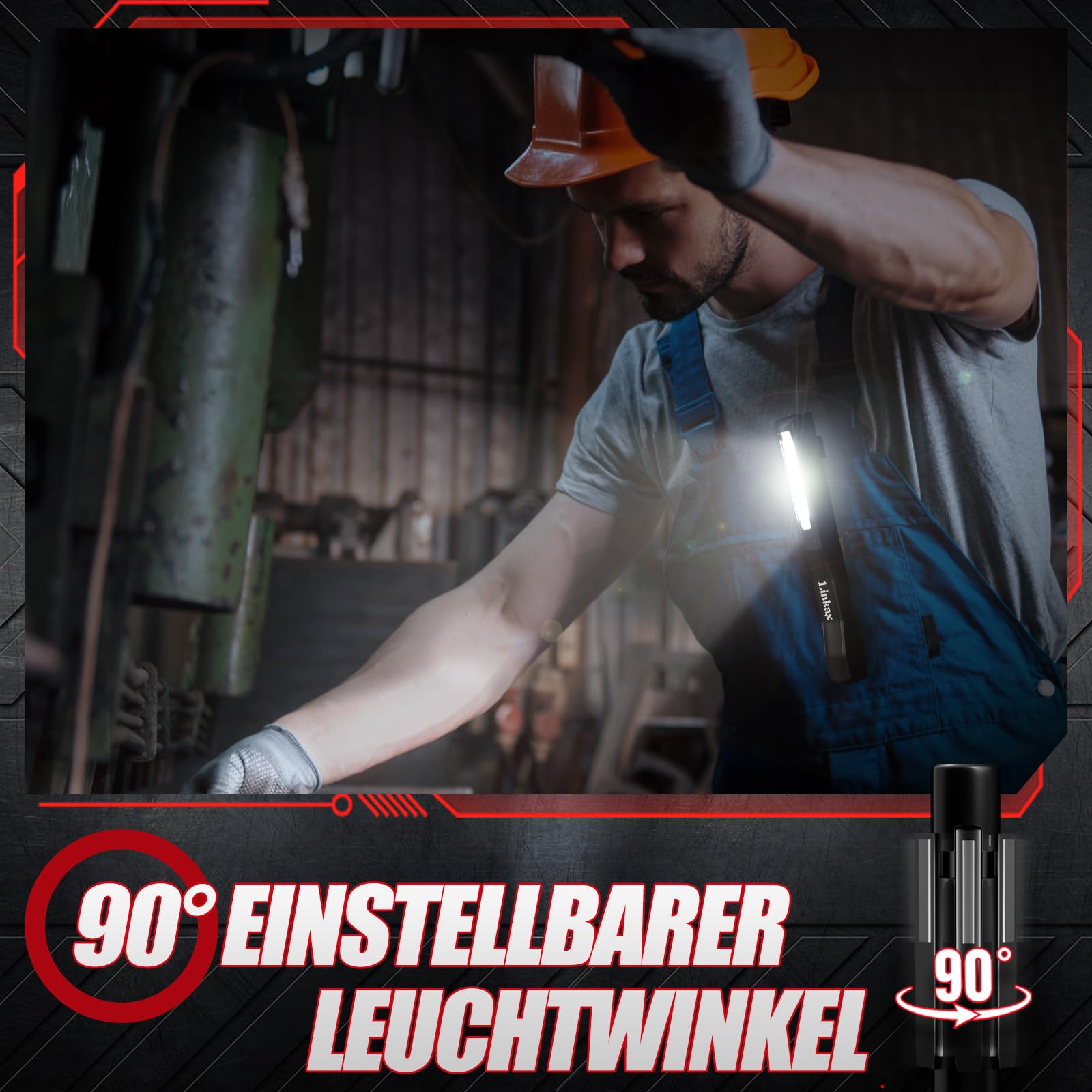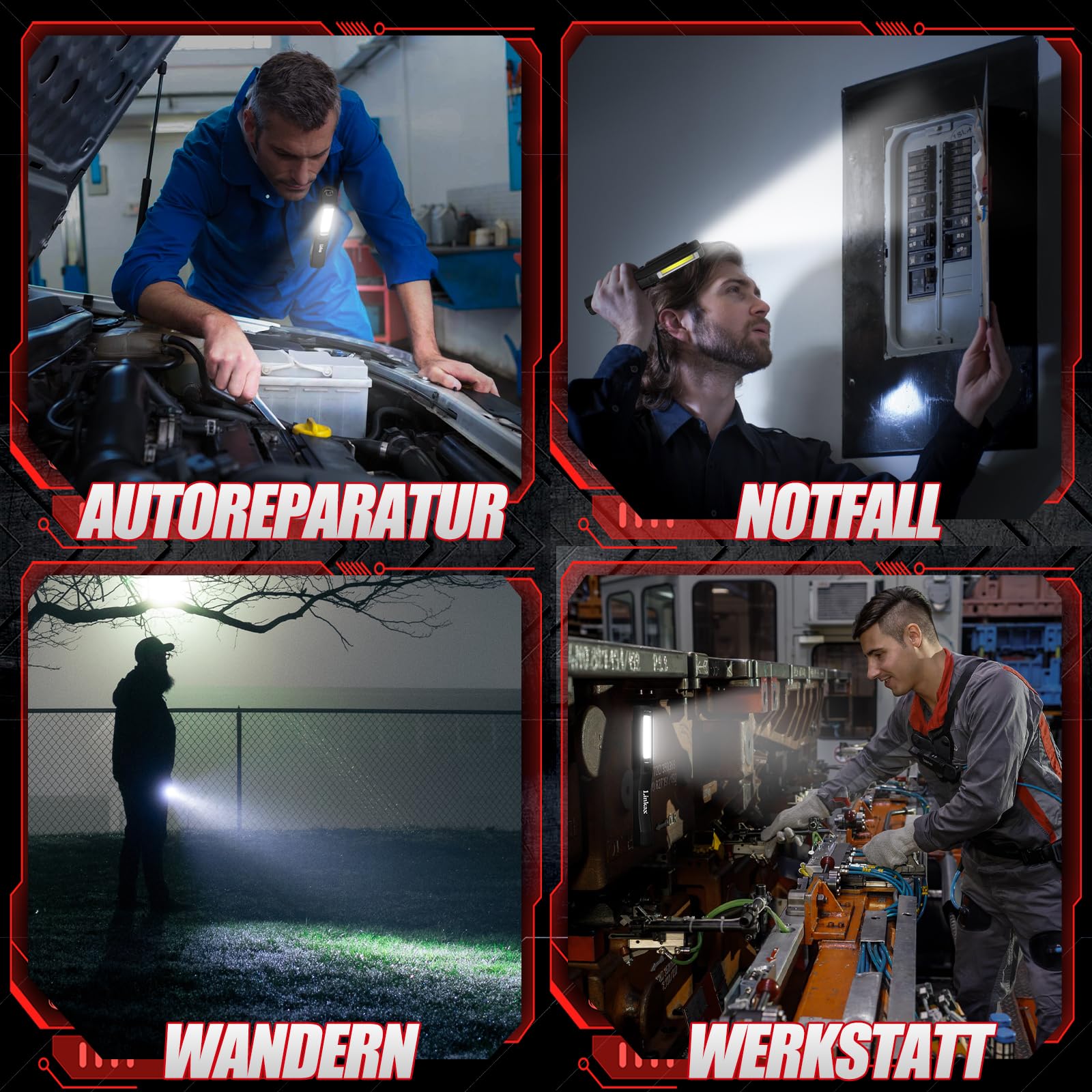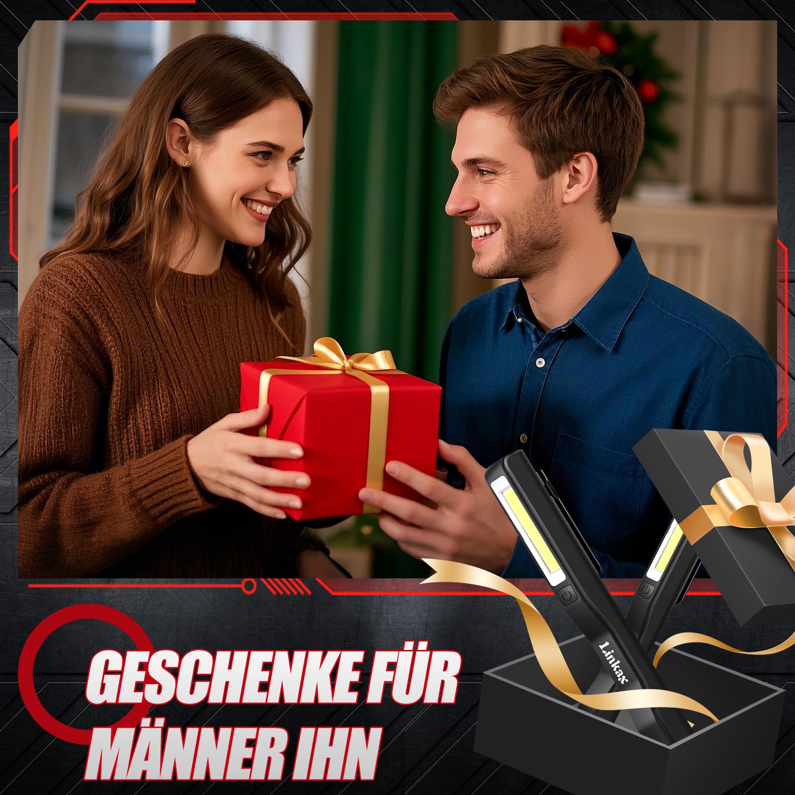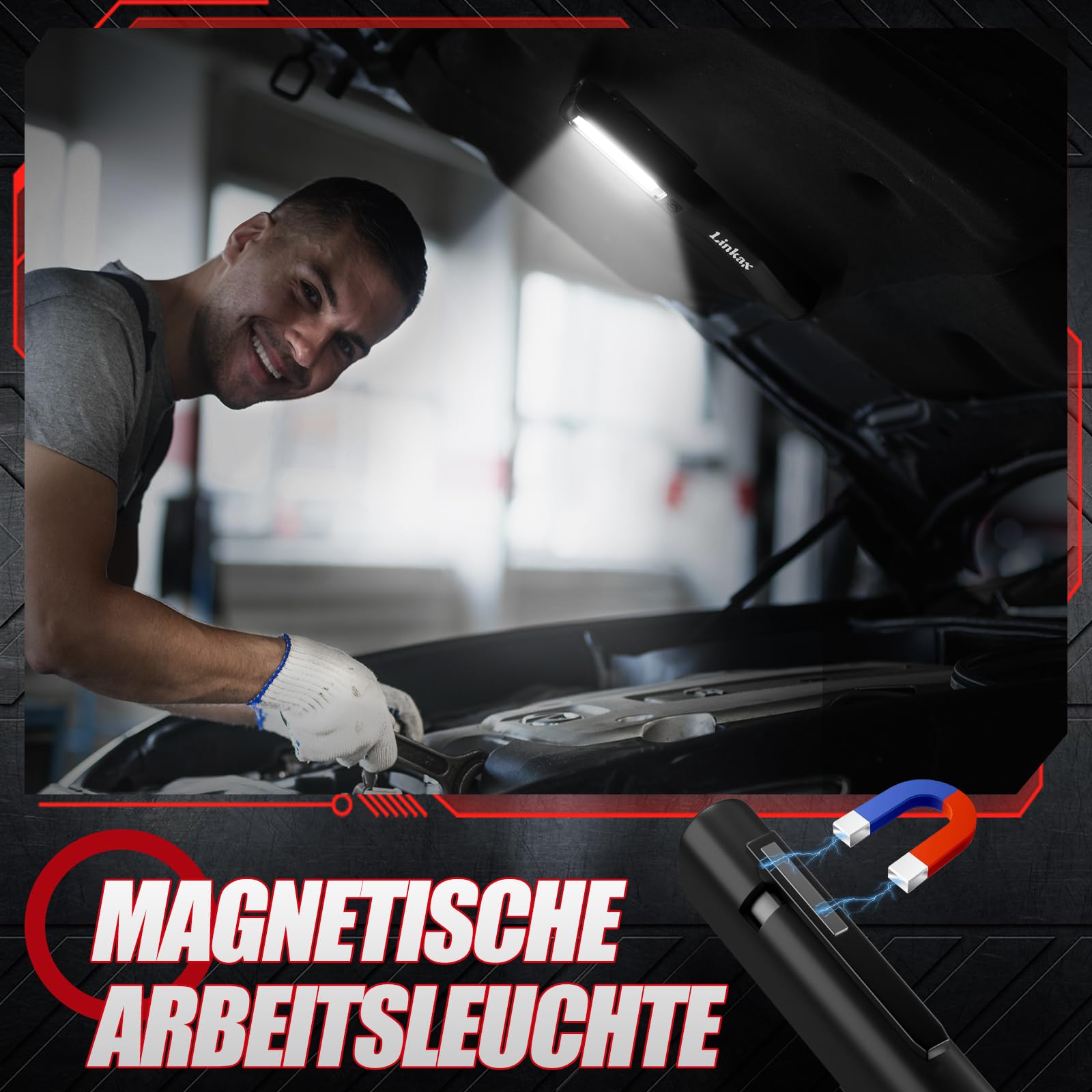 Linkax LED work light workshop lamp 2 pieces, rechargeable LED flashlight, COB hand lamp with magnetic clip for car repair emergency garage tools workshop accessories, dad kids men gift