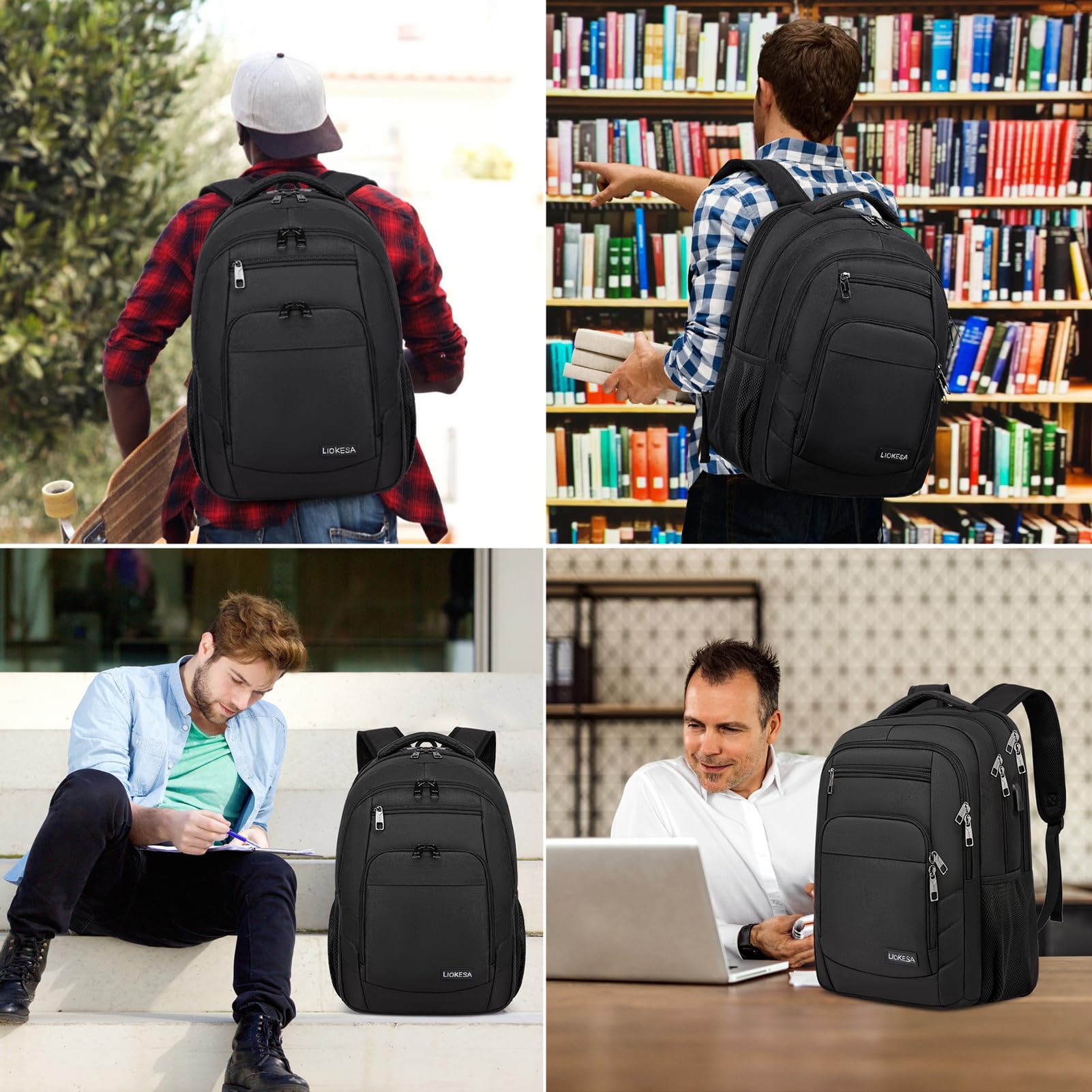 Liokesa backpack for men, 15.6 inch laptop backpack for men, school backpack for teenage boys with USB charging port for business work backpack, for college travel, work, school, black