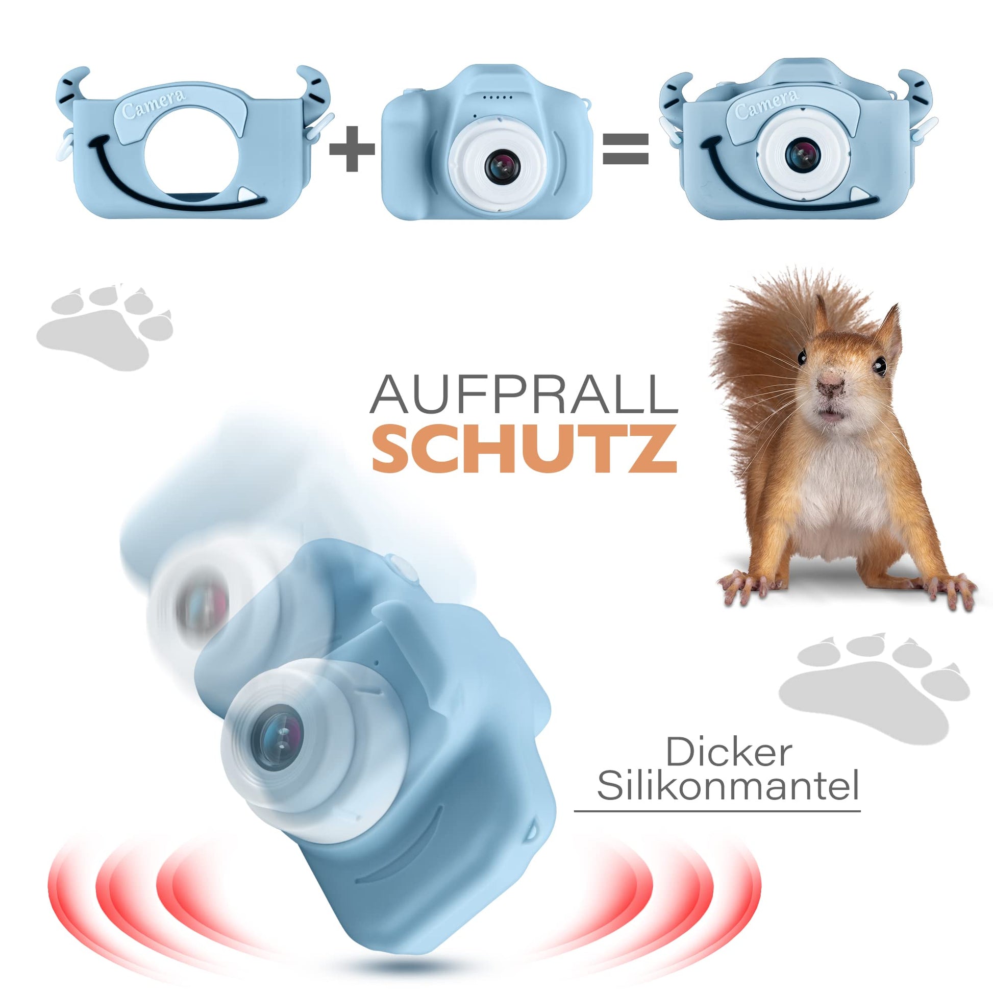 Lion Toys Kids Camera Blue | Photo camera with 32GB memory card, silicone protective case & fun effects | 18 megapixels | rechargeable | Easy operation for ages 3-12.
