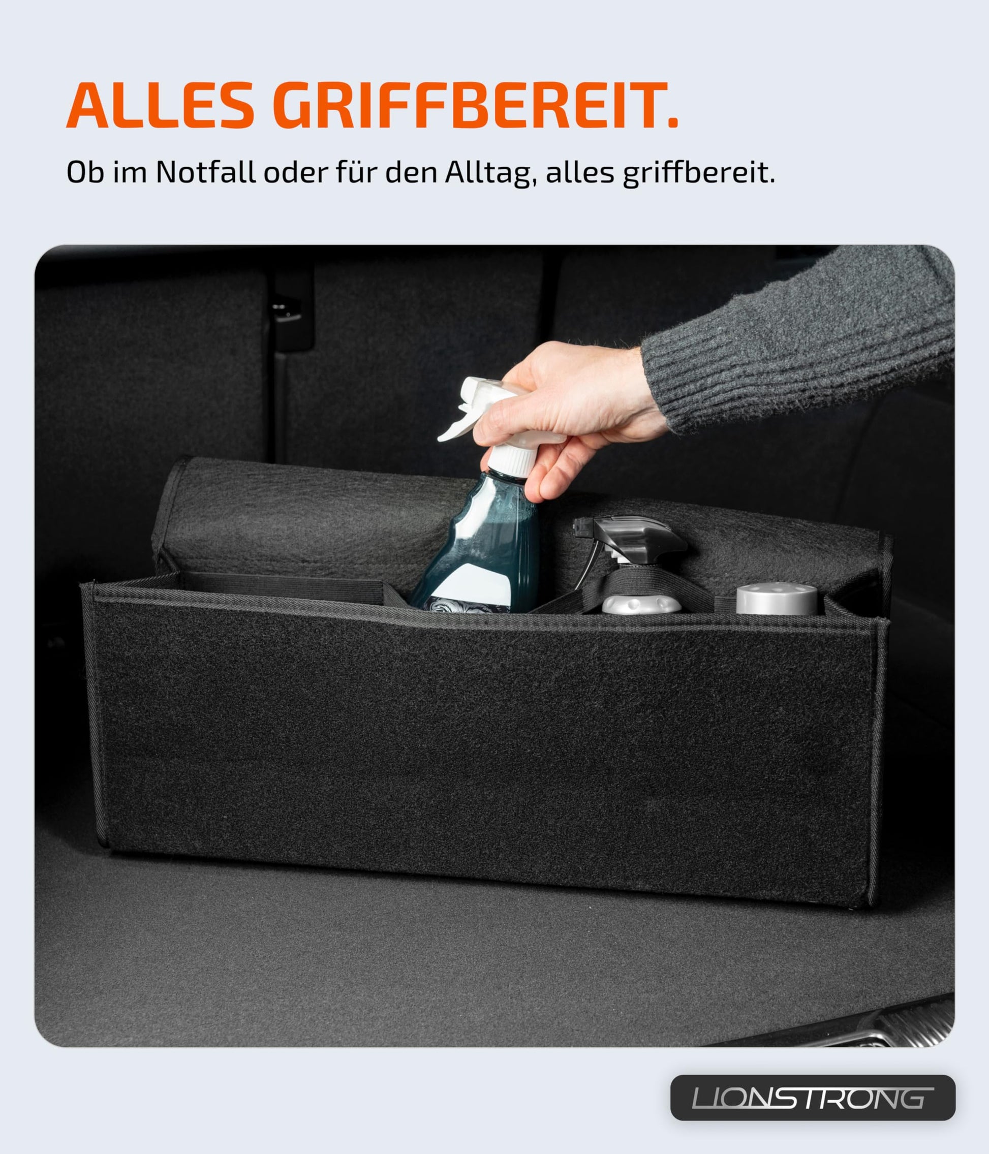 LIONSTRONG Car Trunk Organizer [PREMIUM FELT] - Foldable - Non-Slip with Velcro straps for attachment - Tool bag - Car accessories - Universally suitable for all cars.