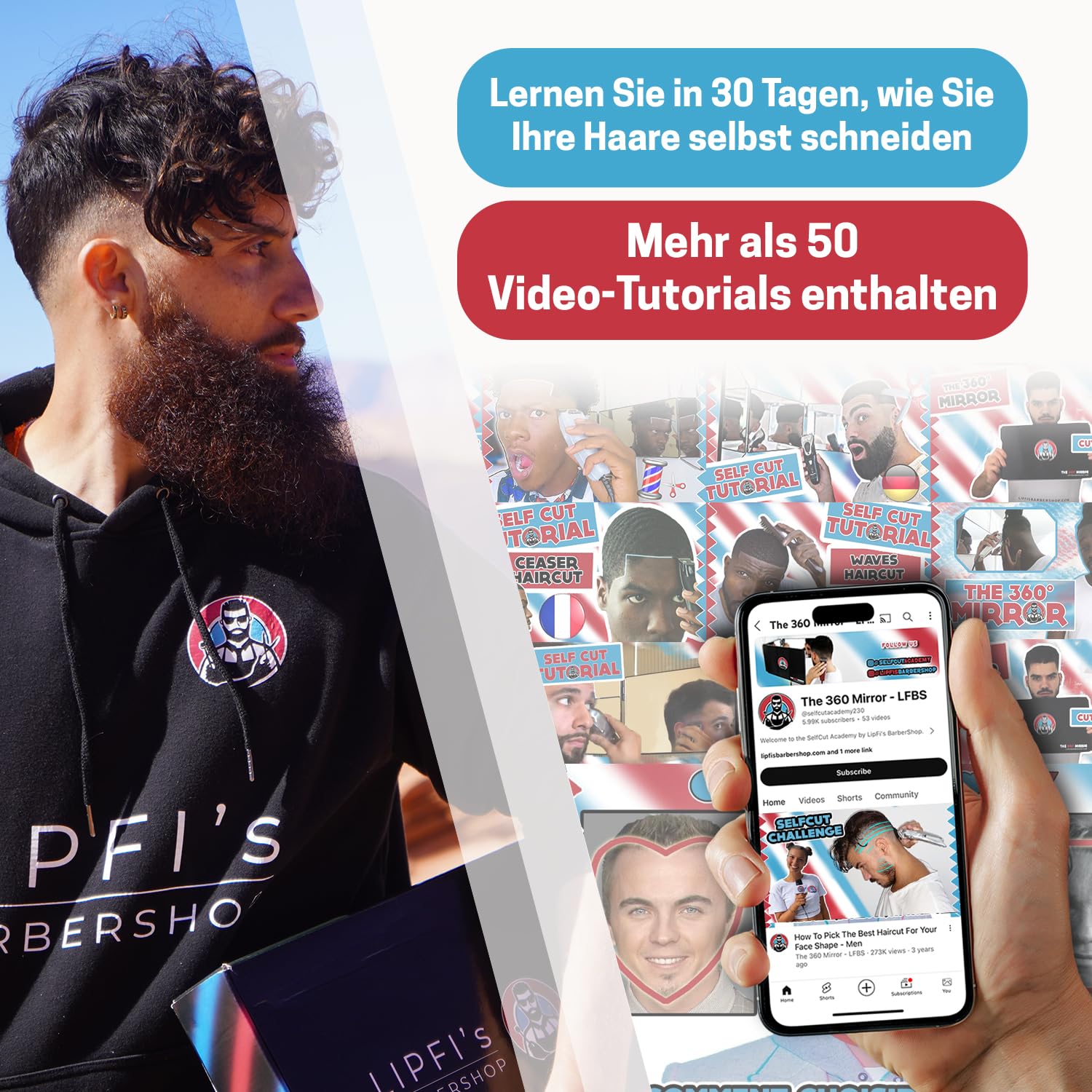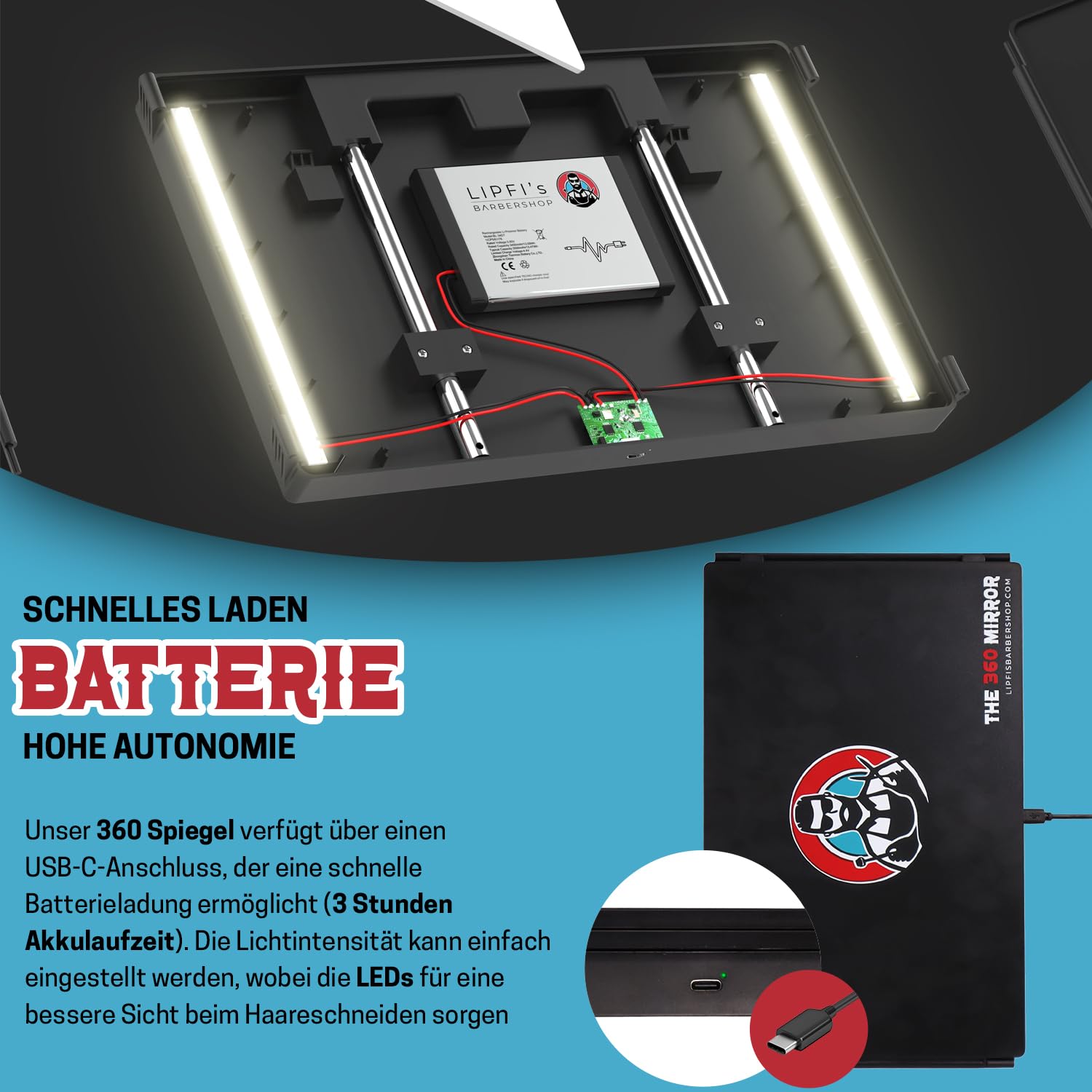 ["**Patented Product**【 MINI LED MIRROR 】: Experience the convenience and portability of our Mini LED Mirror, the perfect grooming tool for those on the go. With its compact size and rechargeable LED lights, you can groom with precision anytime, anywhere.","【 360 DEGREE VIEW 】: Our triple mirror is perfect for self-haircuts, providing a clear and comprehensive view of your head. Take control of your style and achieve precise results with ease.","【 RECHARGEABLE LED LIGHTS 】: Illuminate your hair care sessions with the built-in rechargeable LED lights of our portable LED mirror. Enjoy clear visibility and accurate representation for salon-quality results.","【 LED Brightness Settings 】: Easily adjust your grooming environment with the LED touchscreen on our self-cutting mirror. Customize the brightness of the LED lights to your preference and achieve optimal visibility for precise self-haircuts.","【 USB Type-C INCLUDED 】: Stay prepared with the included USB Type-C charging cable. Effortlessly charge your mirror and ensure uninterrupted haircuts.","【 COMPACT & PORTABLE 】: Designed for on-the-go convenience, our compact LED mirror can be taken anywhere. Experience hassle-free grooming tailored to your needs, whether at home or on the go.","【 SELFCUT TUTORIALS 】: Enhance your self-haircut skills with our extensive collection of free instructional videos created by professional stylists. Gain valuable insights, techniques, and tips to achieve salon-quality results at home.","【 360 DAY WARRANTY 】: Trust LipFi's BarberShop with our special 1-year warranty for your 360-degree LED mirror. Your satisfaction is our priority, and we guarantee the durability and performance of our product. Experience worry-free grooming."]