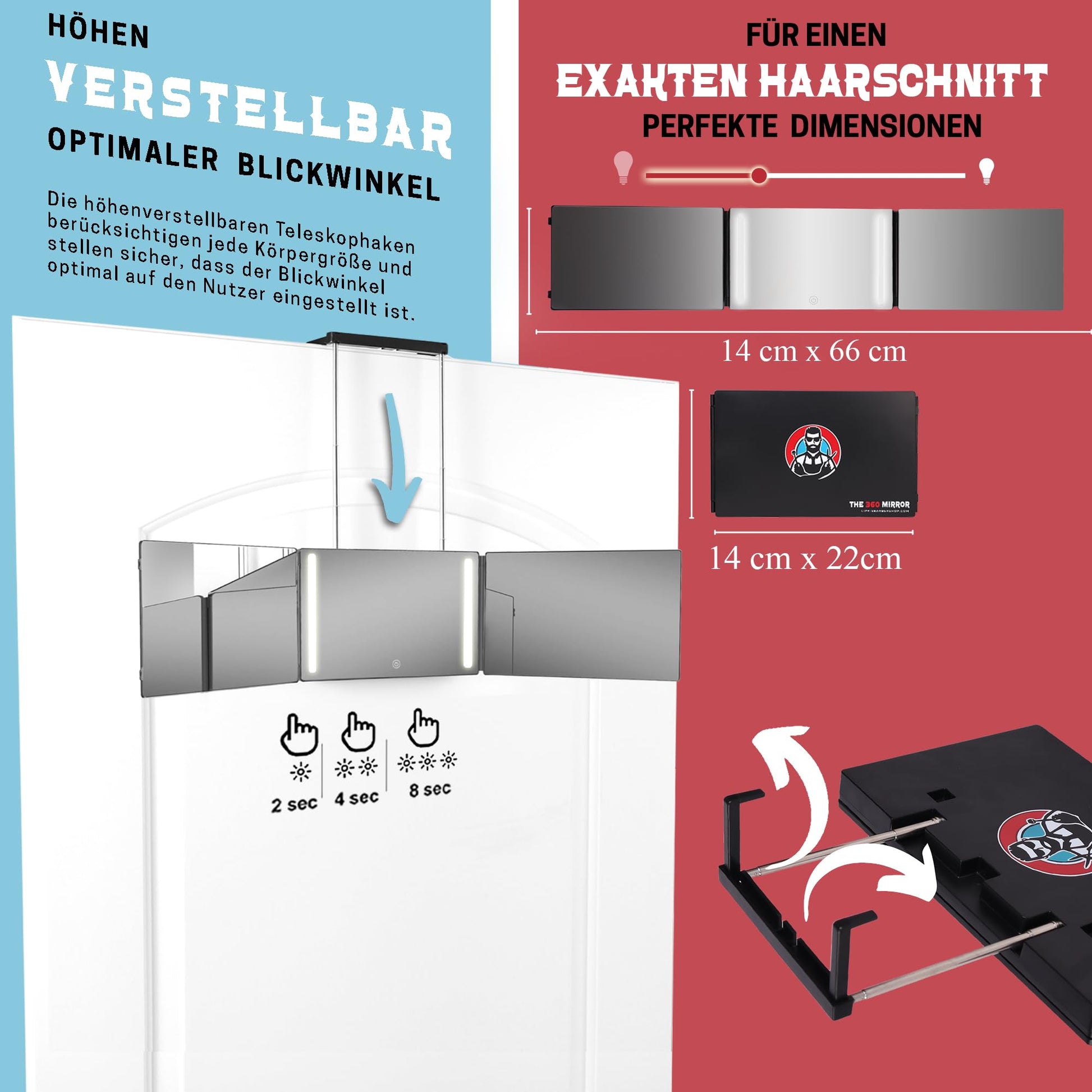 LIPFISBARBERSHOP.COM Portable Mini 360 Degree LED Mirror - Adjustable Hooks - Self-Haircut Mirror - Compact 3-Way Mirror for precise haircutting - Self-Haircut Mirror.