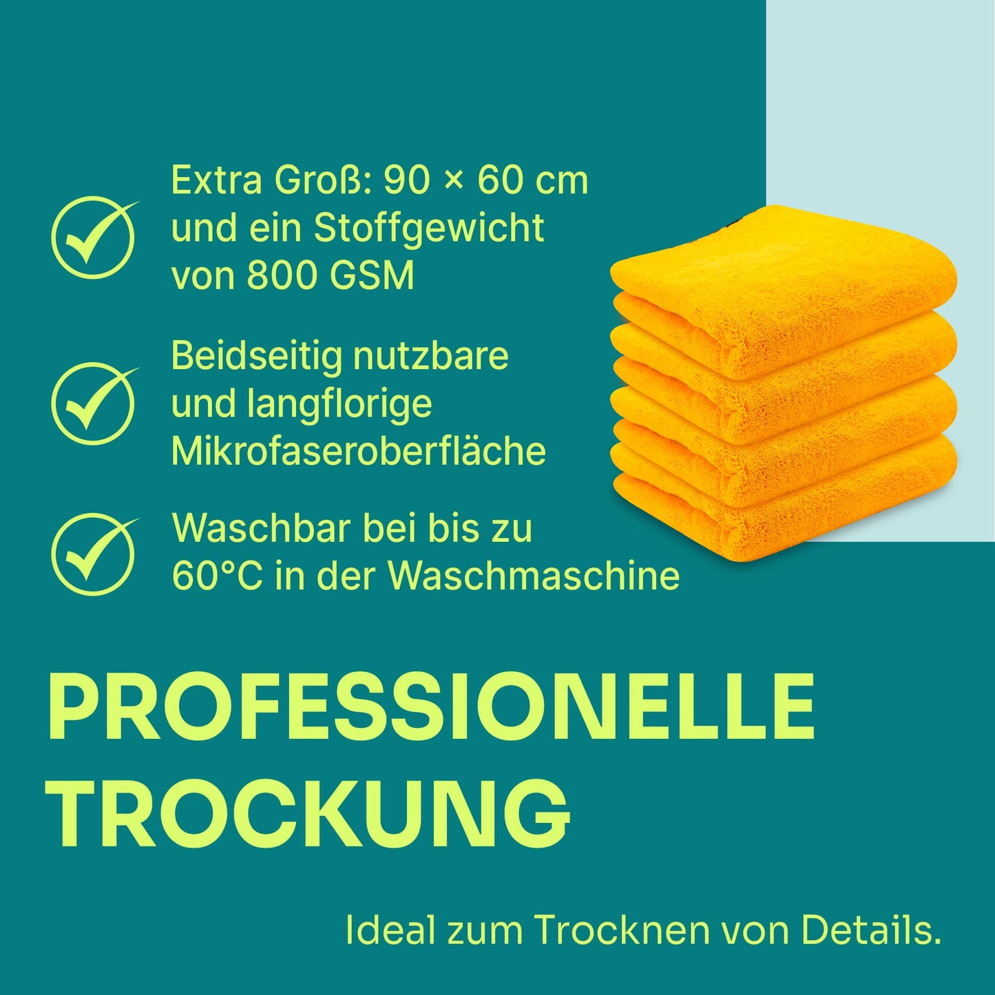 "PROFESSIONAL VEHICLE DRYING: With a size of 90 x 60 cm and a weight of 800 GSM, you can easily dry up to 2-3 vehicles (Golf-class) without having to wring out the towel",