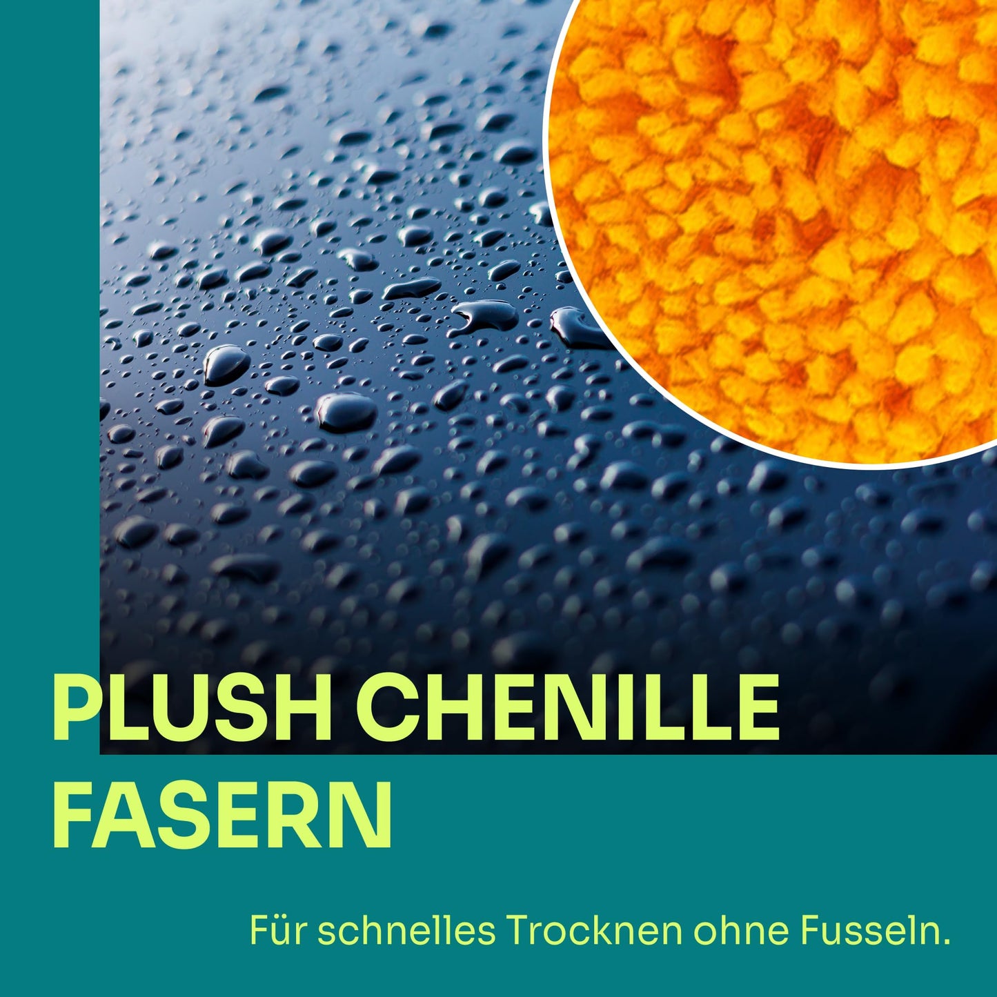 "ABSORBENT & STREAK-FREE: Thanks to the absorbent Plush Chenille fibers, the towel takes in large amounts of water and dries any vehicle in record time. What's left is a radiant shine without streaks or lint",